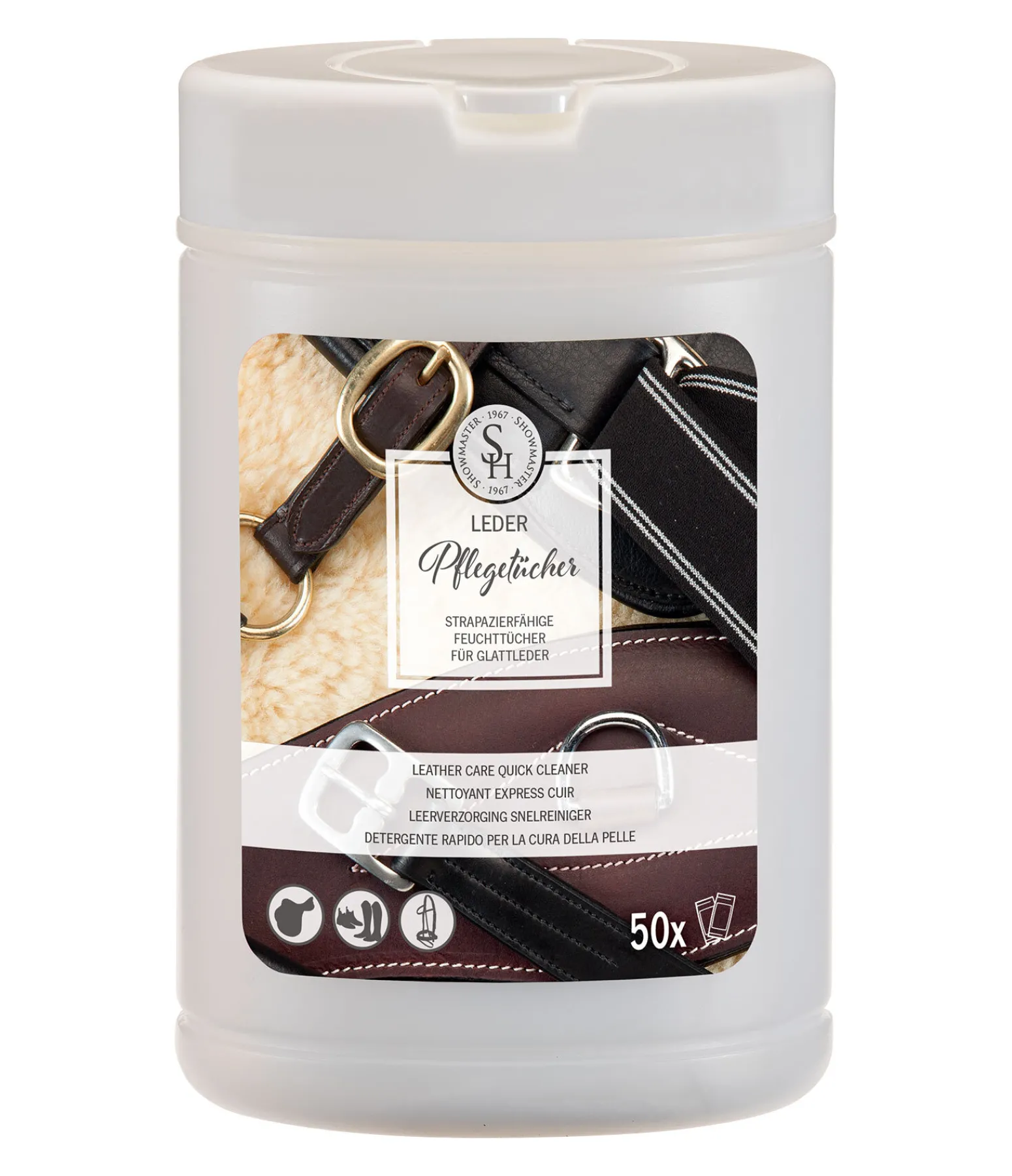 Lingettes résistantes dans un distributeur, pour le soin et l’entretien rapide de tous les cuirs lisses comme par ex. les bottes, les chaussures, la selles et les bridons. Idéal pour une utilisation quotidienne, lors des déplacements ou en concours grâce à sa manipulation pratique et facile. Distributeur contenant 50 lingettes.