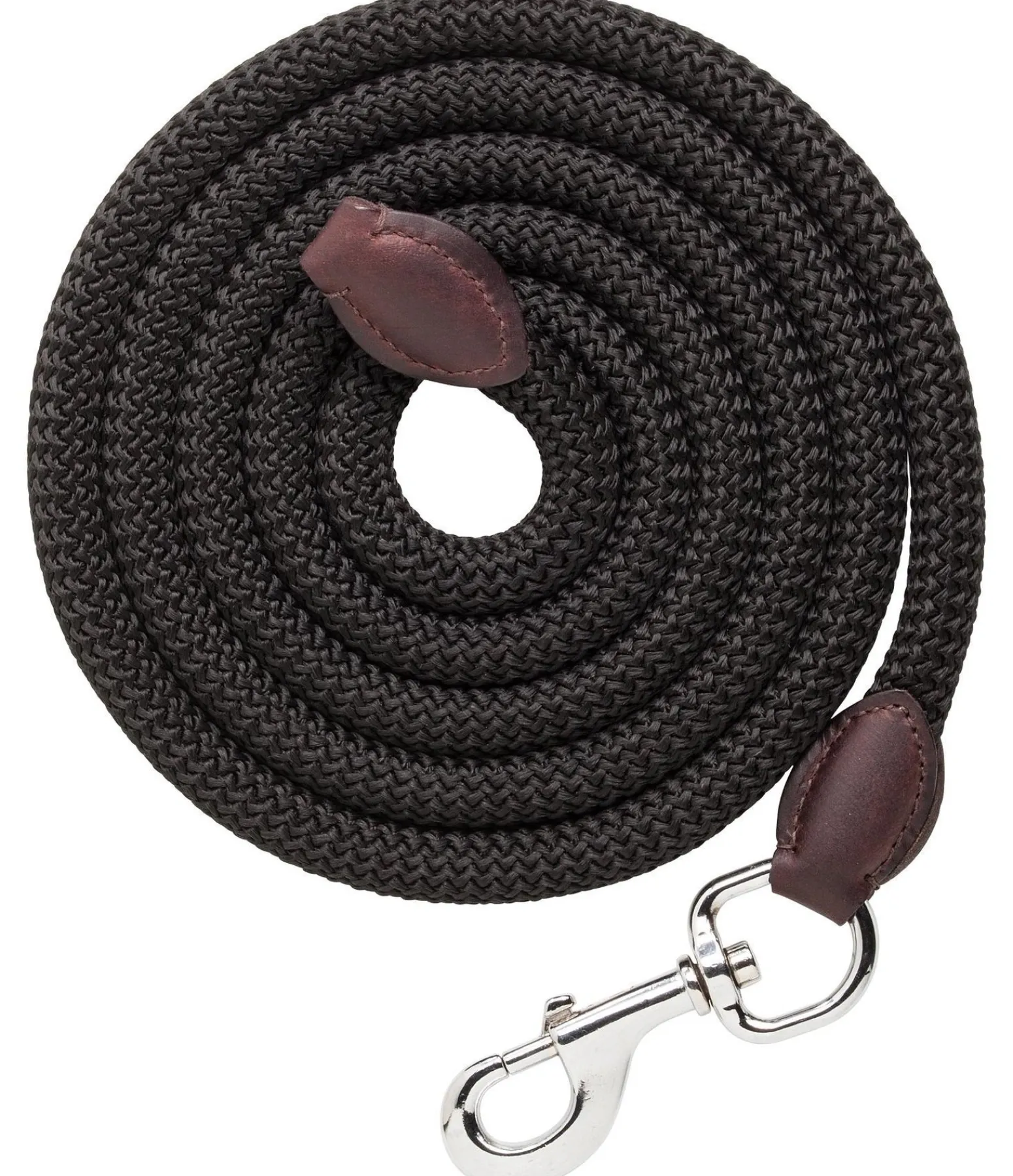 Longe ronde avec élégantes extrémités en cuir assortie au licol Kate (réf. 440 499). Avec mousqueton. Longueur 2 m 10.