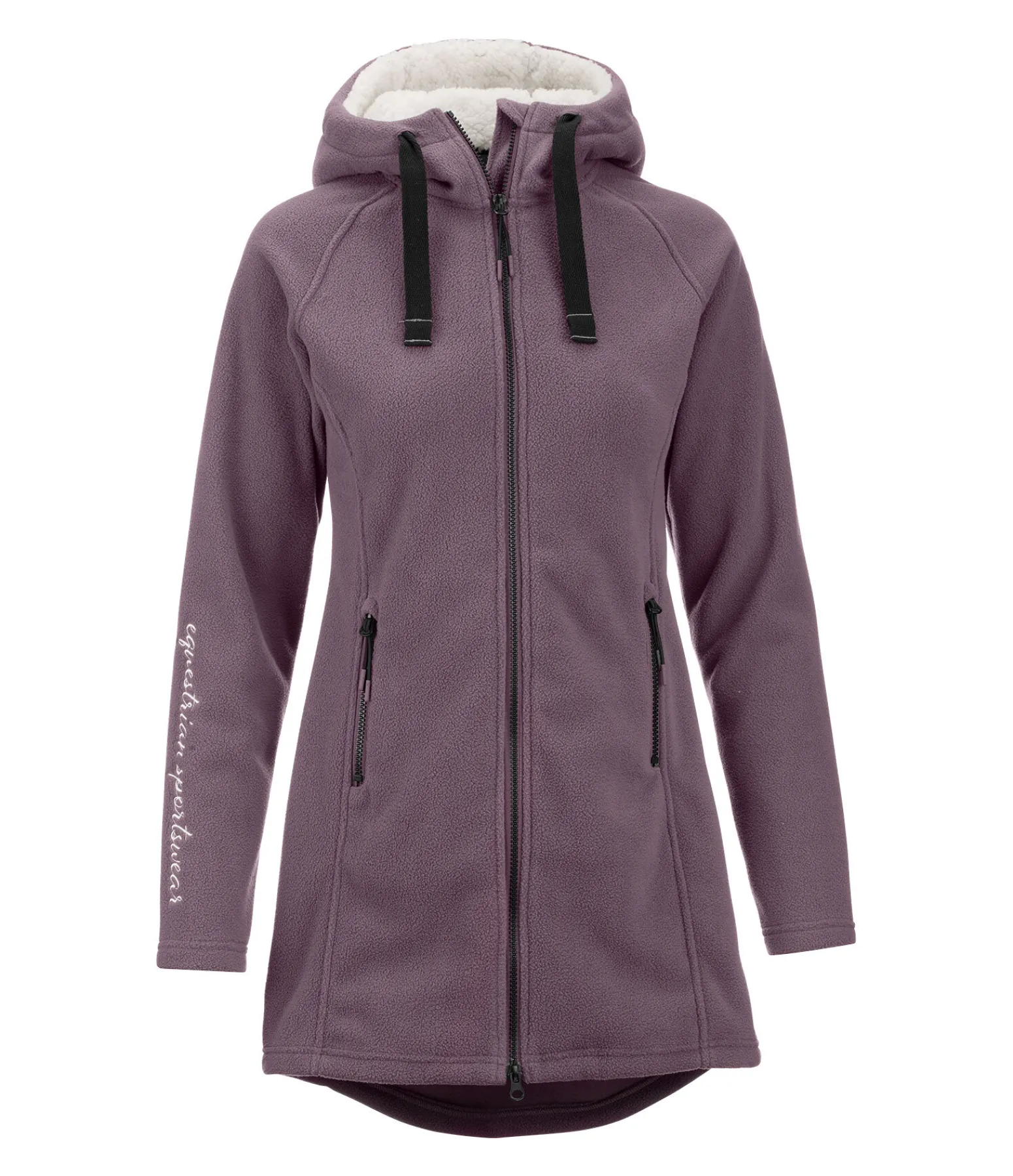 Manteau chaud en polaire agréable à porter. Capuche réglable doublée en fourrure Teddy douce. Fermeture à glissière double sens avec sous-patte. Deux poches zippées latérales. Badge STEEDS et broderie sur la manche. 100 % polyester.
