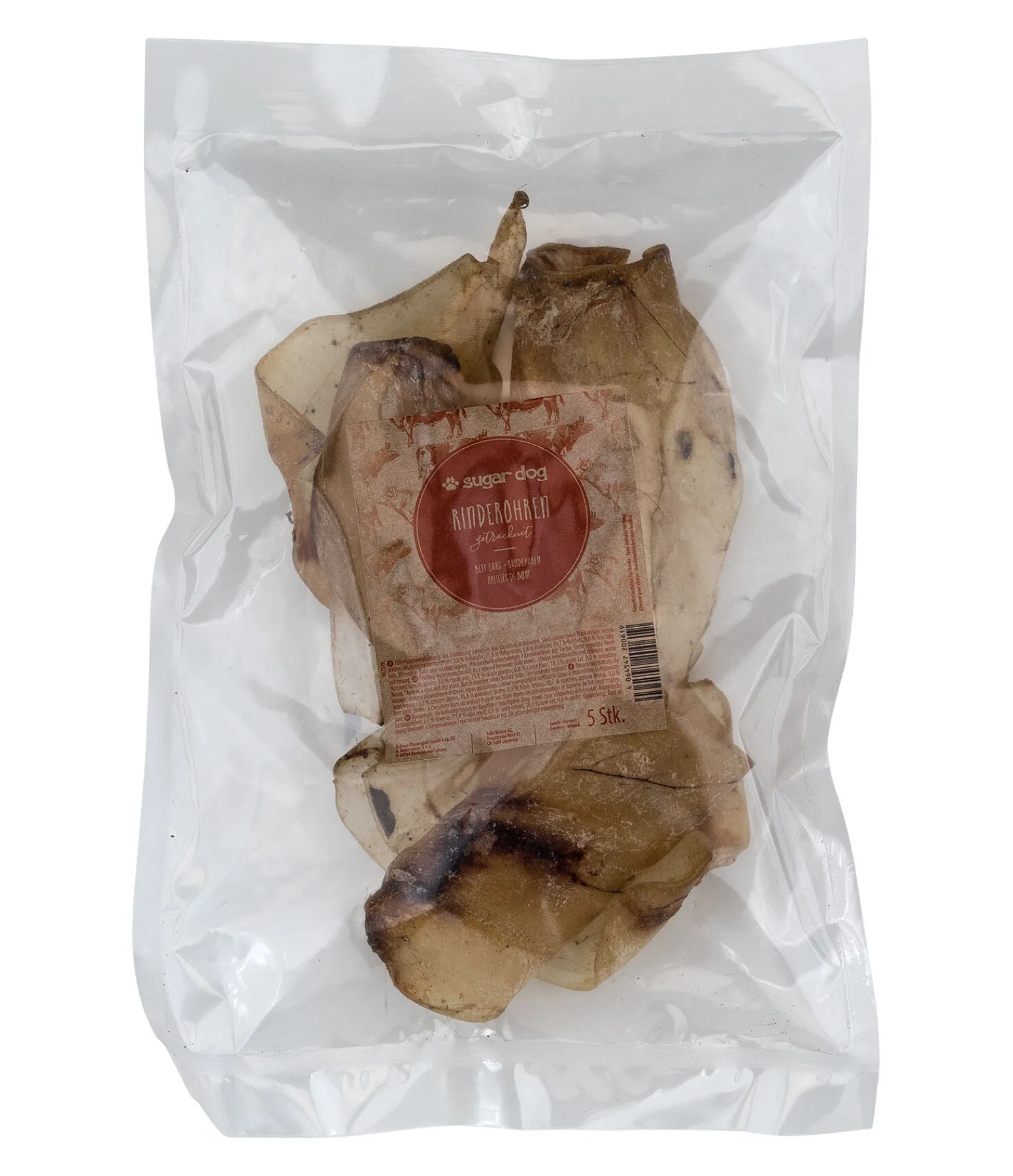 Oreilles de boeuf séchées pour un plaisir à mâcher durable. Lot de 5. Produites en Autriche.