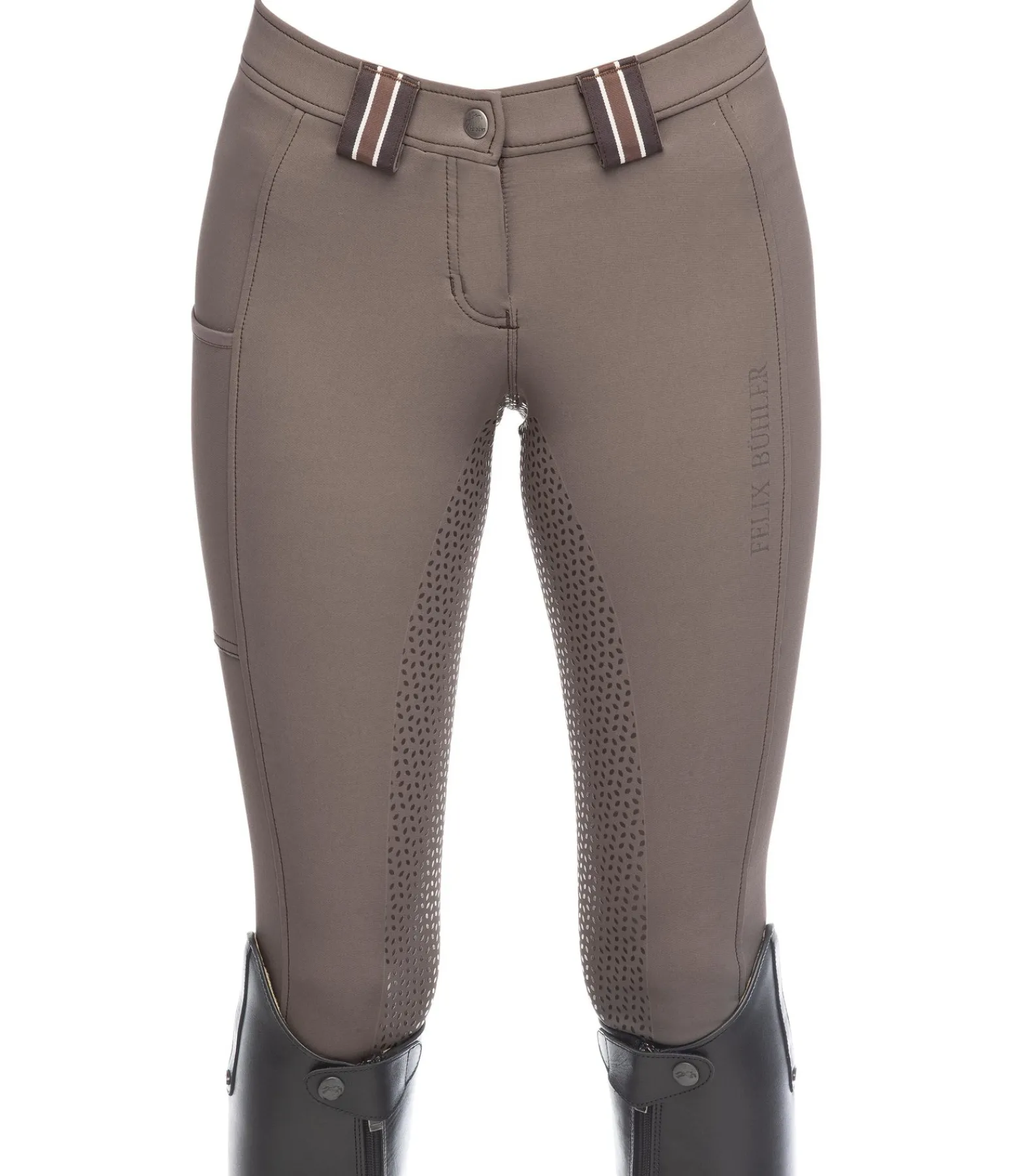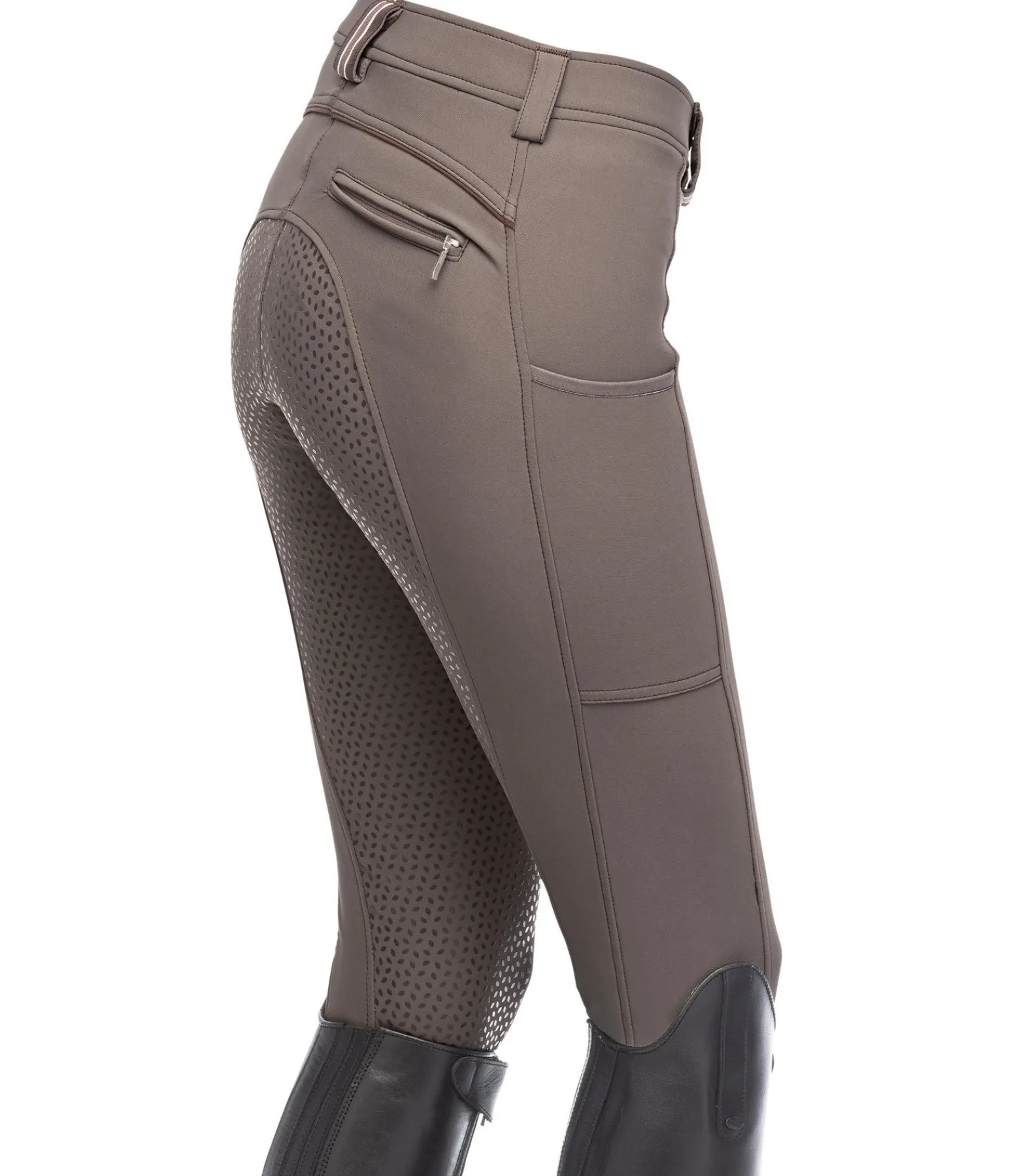 Pantalon d’équitation adapté à toutes les saisons. Fond intégral Grip siliconé pour une parfaite adhérence à la selle. Bas de jambe extensible sans patte auto-agrippante. Aucune couture au niveau des genoux. Matière extensible, déperlante et respirante. Résistant à la déchirure et facile d’entretien. Grande poche pour téléphone portable sur la jambe, une poche zippée discrète arrière. Ceinture élastiquée avec passants à rayures de couleur contrastante. 93 % nylon, 7 % élasthanne.