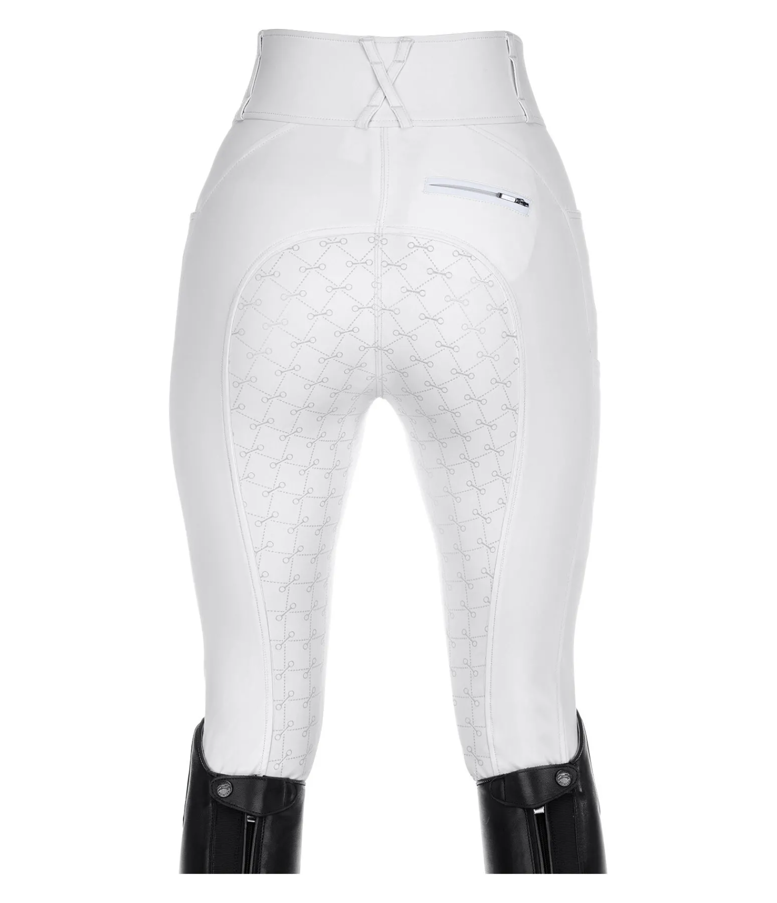 Pantalon d’équitation sportswear et extensible, à fond intégral grip en silicone avec motifs de mors. Matière déperlante, respirante et à séchage rapide. Broderie Felix Bühler sur la jambe. Poche arrière zippée et poche pour téléphone portable sur la cuisse. Deux poches avant. Ceinture à passants extra large élastiquée avec 2 boutons. Aucune couture aux genoux. Bas de jambe extensible en stretch. 89 % nylon, 11 % élasthanne.