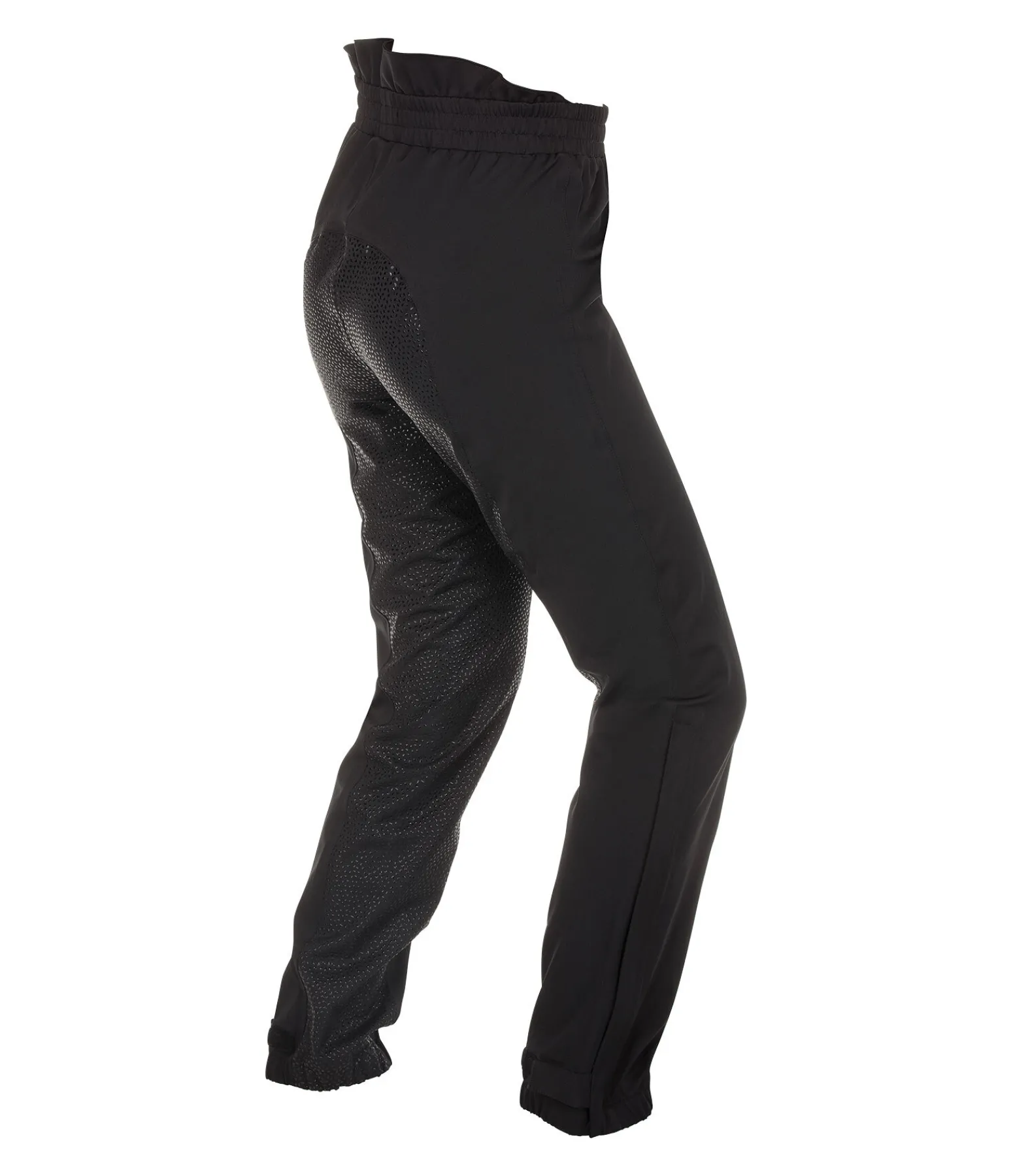 Sur-pantalon de pluie. Imperméable (5000 mm), coupe-vent et respirant. Équipé d’un fond intégral en silicone pour une bonne adhérence à la selle. Fermeture à glissière latérale continue pour un enfilage simplifié. Bas de jambe réglable par patte auto-agrippante. Large ceinture élastiquée. 96 % polyester, 4 % élasthanne.