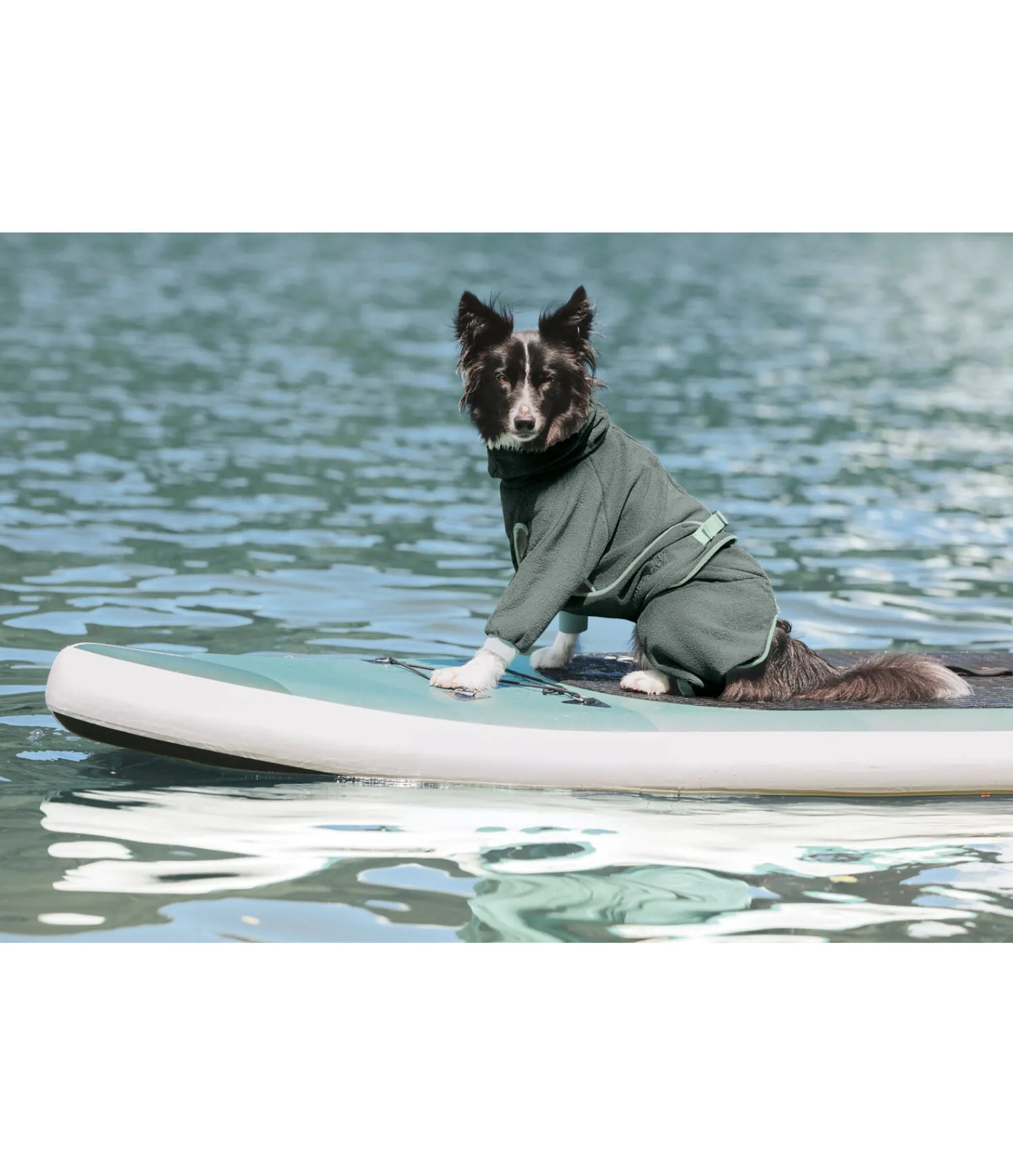 Idéal pour les chiens nageurs ou les jours de pluie : combinaison peignoir pour chien en tissu éponge doux à séchage rapide, absorbant l’humidité. Rabat ventral et col montant pour une protection intégrale. Protège la voiture et la maison de l’humidité et des salissures. Rabat ventral avec fermeture à clip réglable. Fermeture à glissière le long du dos pour faciliter l’enfilage et le retrait. Ouvrir les clips et la fermeture à glissière, laisser le chien passer la tête dans le col puis glisser délicatement ses pattes dans les ouvertures prévues à cet effet. Refermer ensuite la fermeture à glissière et les clips. Régler si besoin la longueur du rabat ventral afin que le peignoir tienne bien en place. 80 % polyester, 20 % nylon.