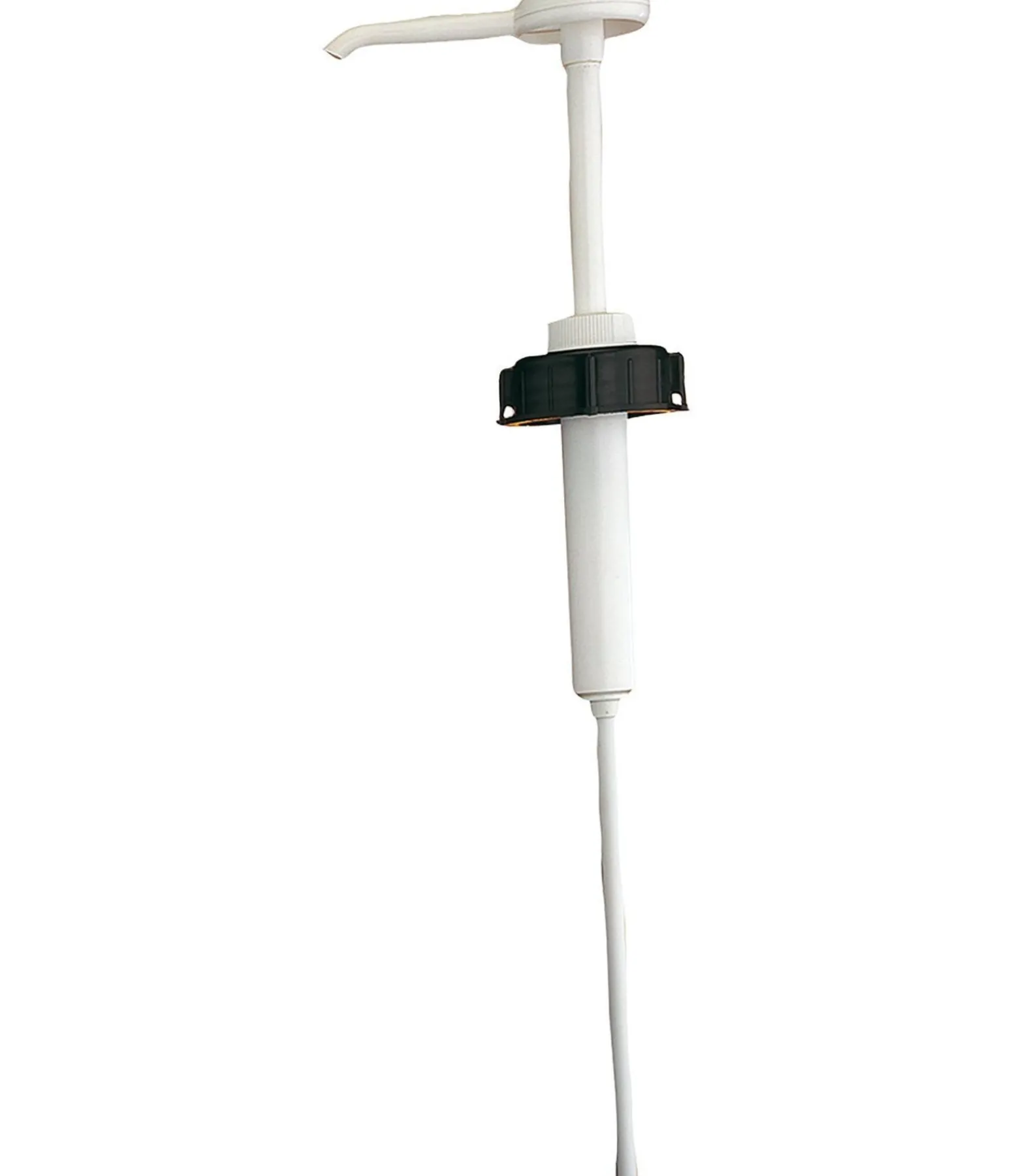 Pompe pour flacon ou bidon. Diamètre : 45 mm. 1 pression avec la pompe correspond à environ 30 ml d’huile.