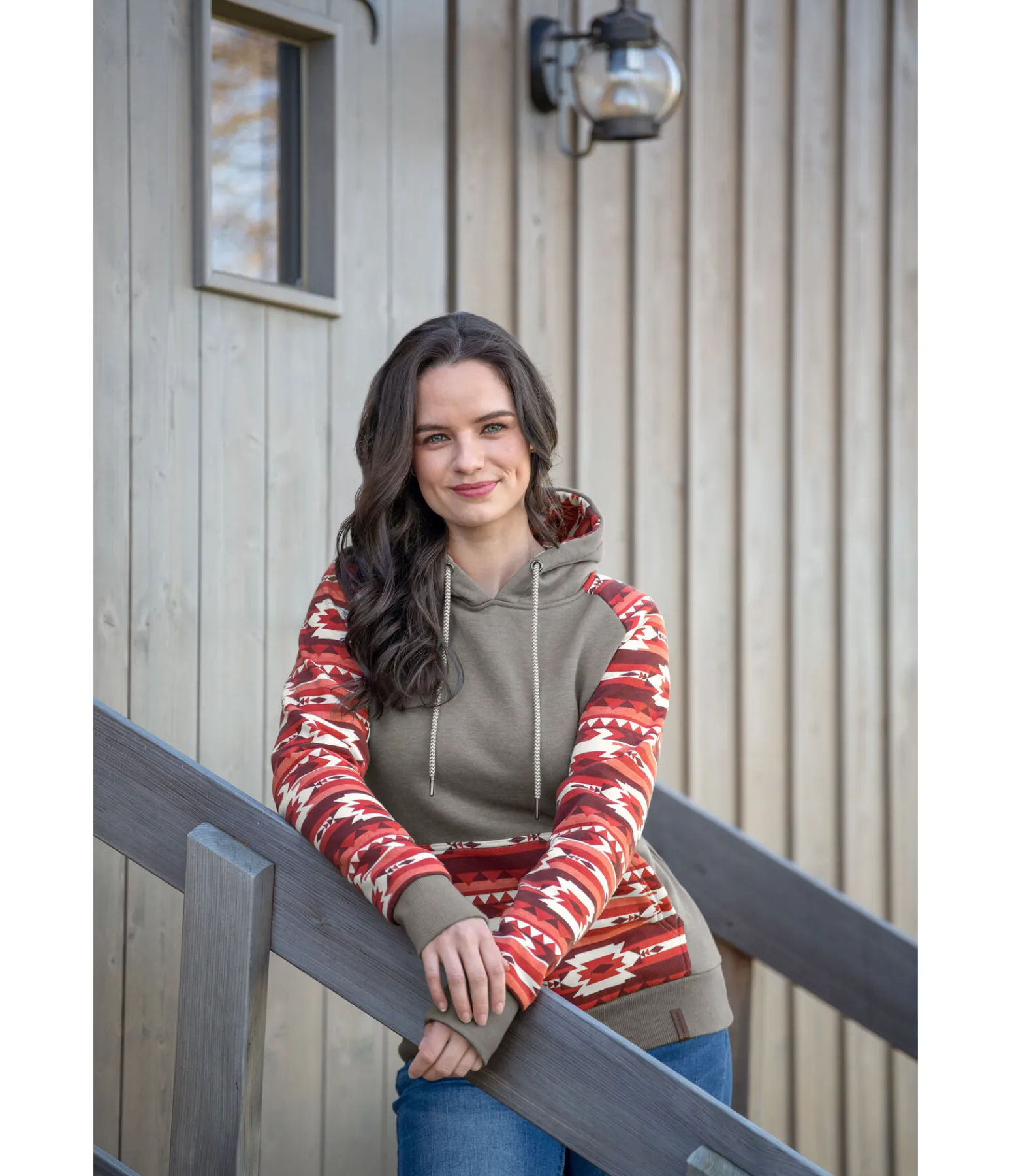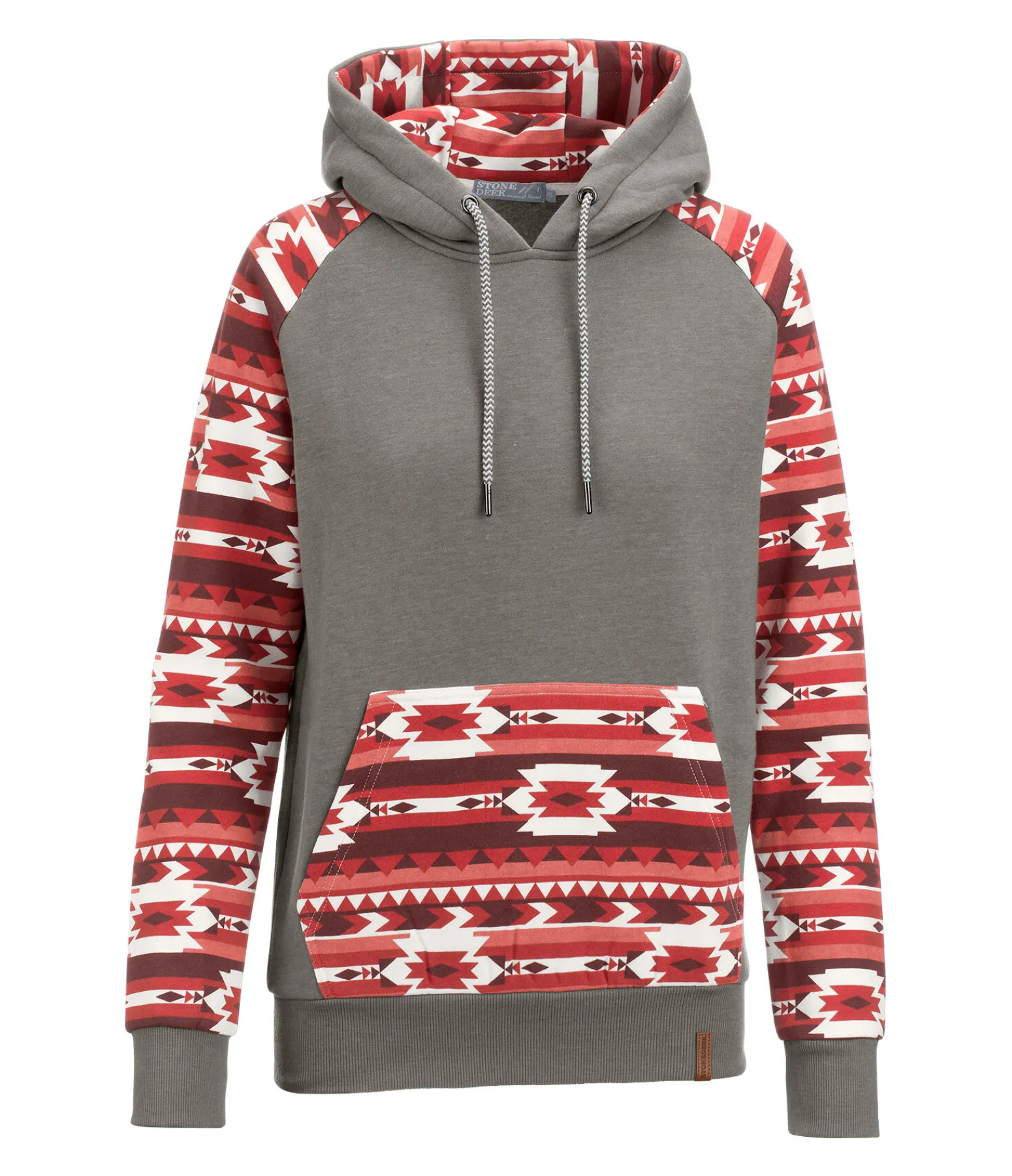 Sweat à capuche avec motif aztèque. Poche kangourou. Finition en bord-côte à la taille et en bas des manches. 60 % coton, 40 % polyester.