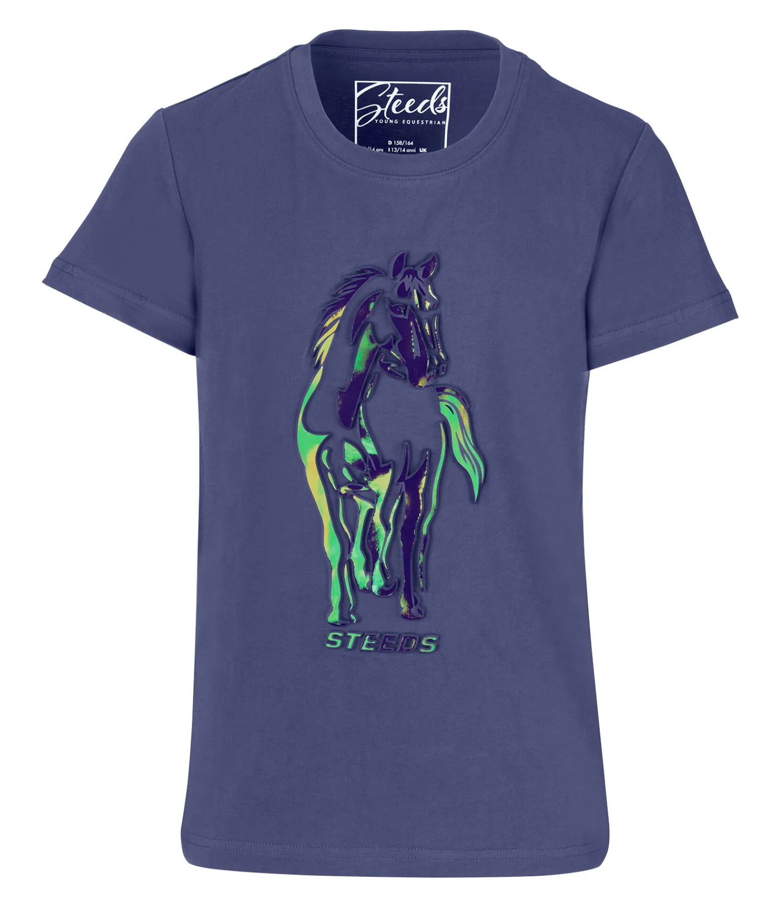 T-shirt décontracté à col rond avec joli imprimé cheval en relief. 100 % coton.