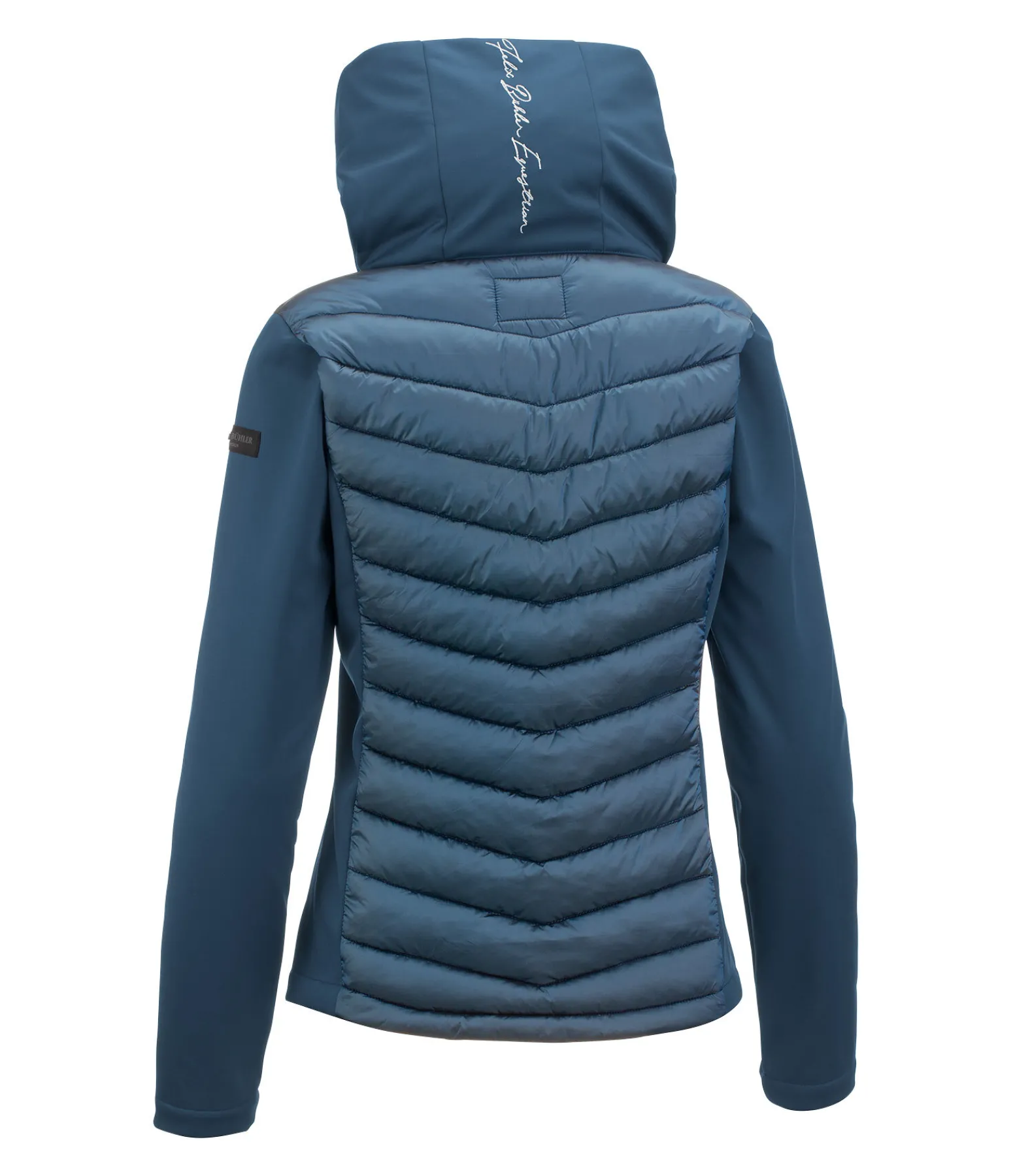 Veste d’équitation bi-matière chic. Coupe-vent. Matelassage doux et brillant avec garnissage léger en imitation duvet. Manches et côtés en softshell extensible. Col double, capuche matelassée qui se range dans le large col zippé joliment brodé. Fermeture à glissière double sens brillante avec sous-patte et protège-menton. Deux poches latérales zippées. Taille réglable. 100 % nylon ; softshell 92 % polyester, 8 % élasthanne.
