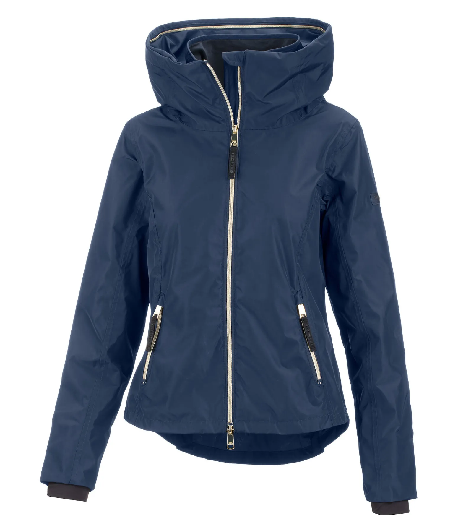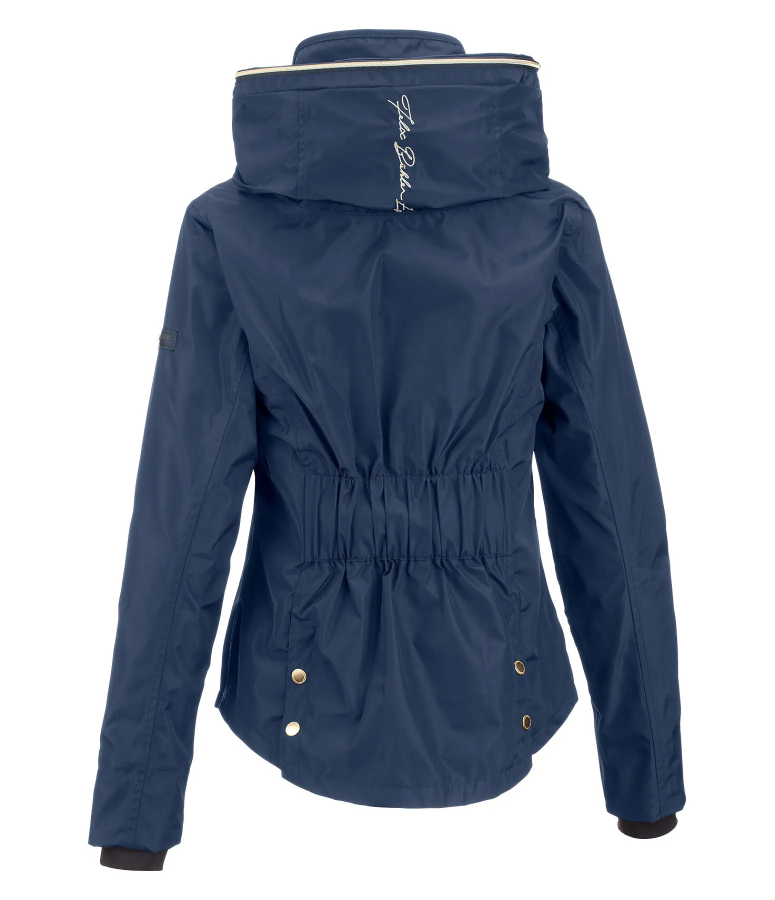 Élégante veste d’équitation technique à l’ajustement optimal. Imperméable (3.000 mm), coupe-vent et respirante. Double col. La capuche peut se ranger dans le vaste col. 2 fentes cavalières avec boutons-pression à l’arrière et large élastique dans le dos pour marquer la taille. Fermeture à glissière double sens avec sous-patte et protège-menton, 2 poches zippées à l’avant, poignets élastiqués. 100 % polyester.
