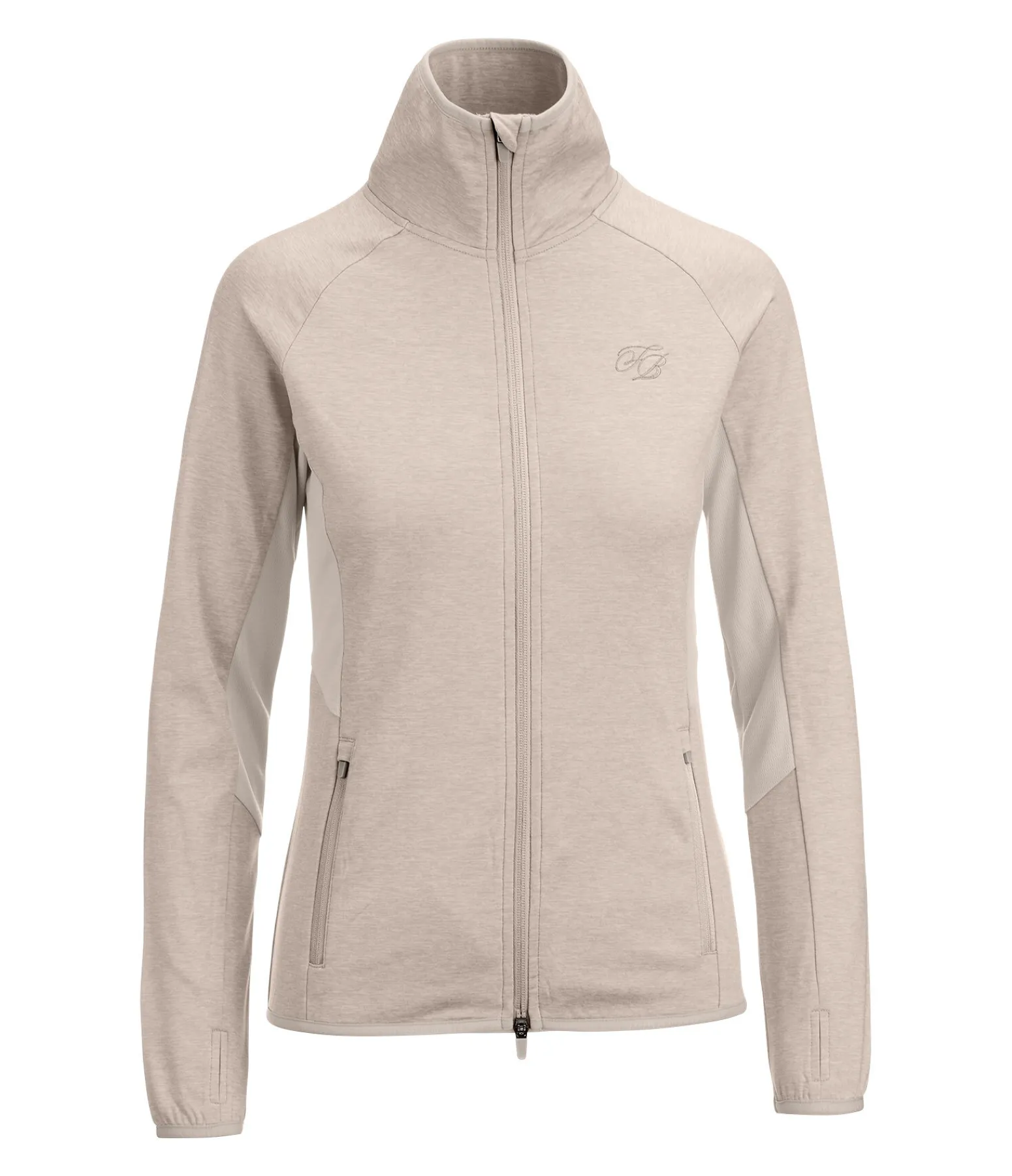 Veste douce et extensible en stretch Performance chiné. Respirante et à séchage rapide. Inserts en mesh sous les bras et sur les côtés, intérieur molletonné, 2 poches zippées devant, fermeture à glissière double sens avec protège-menton, bordure élastiquée en bas des manches, au col et à la taille. 92 % polyester, 8 % élasthanne.