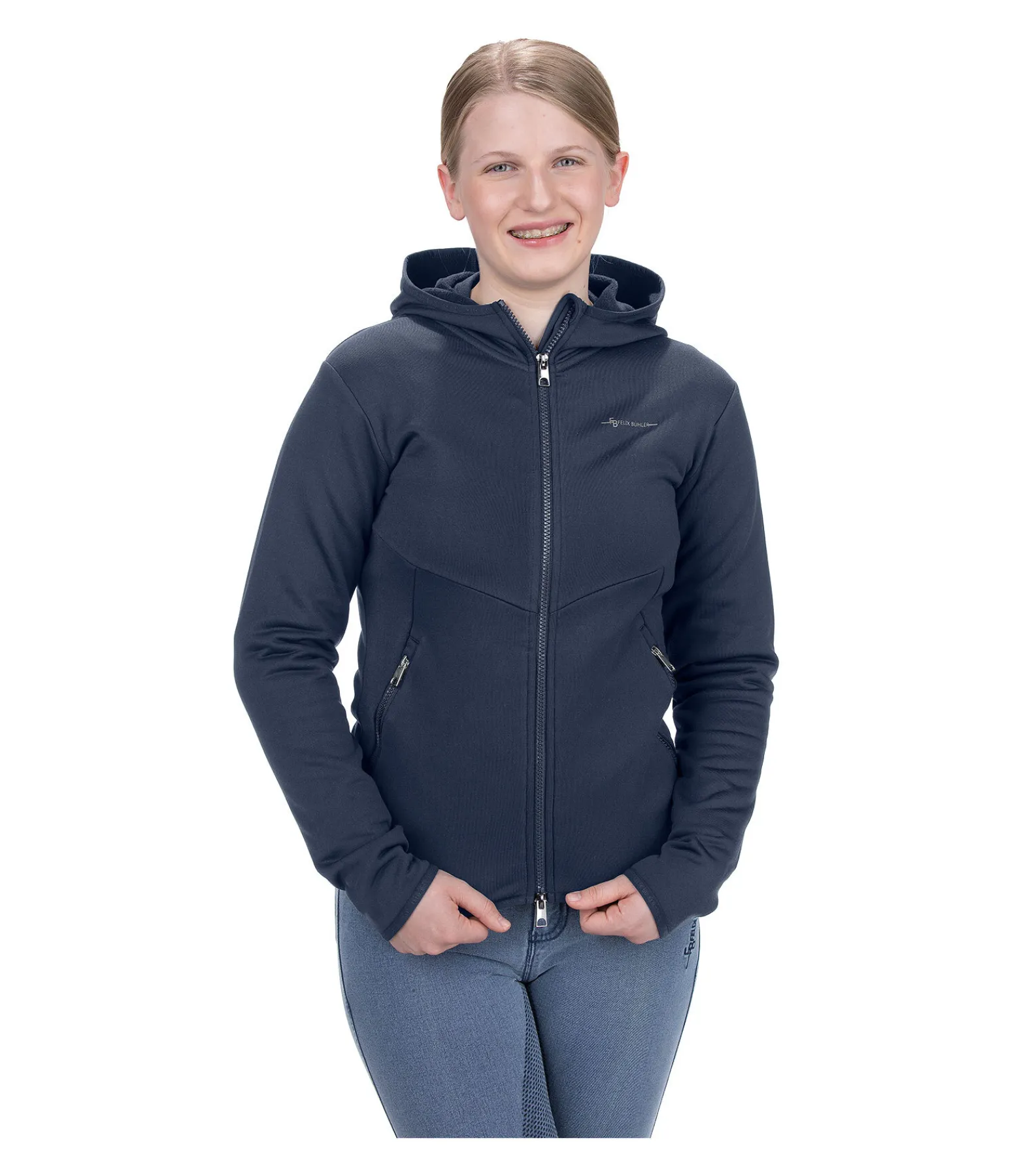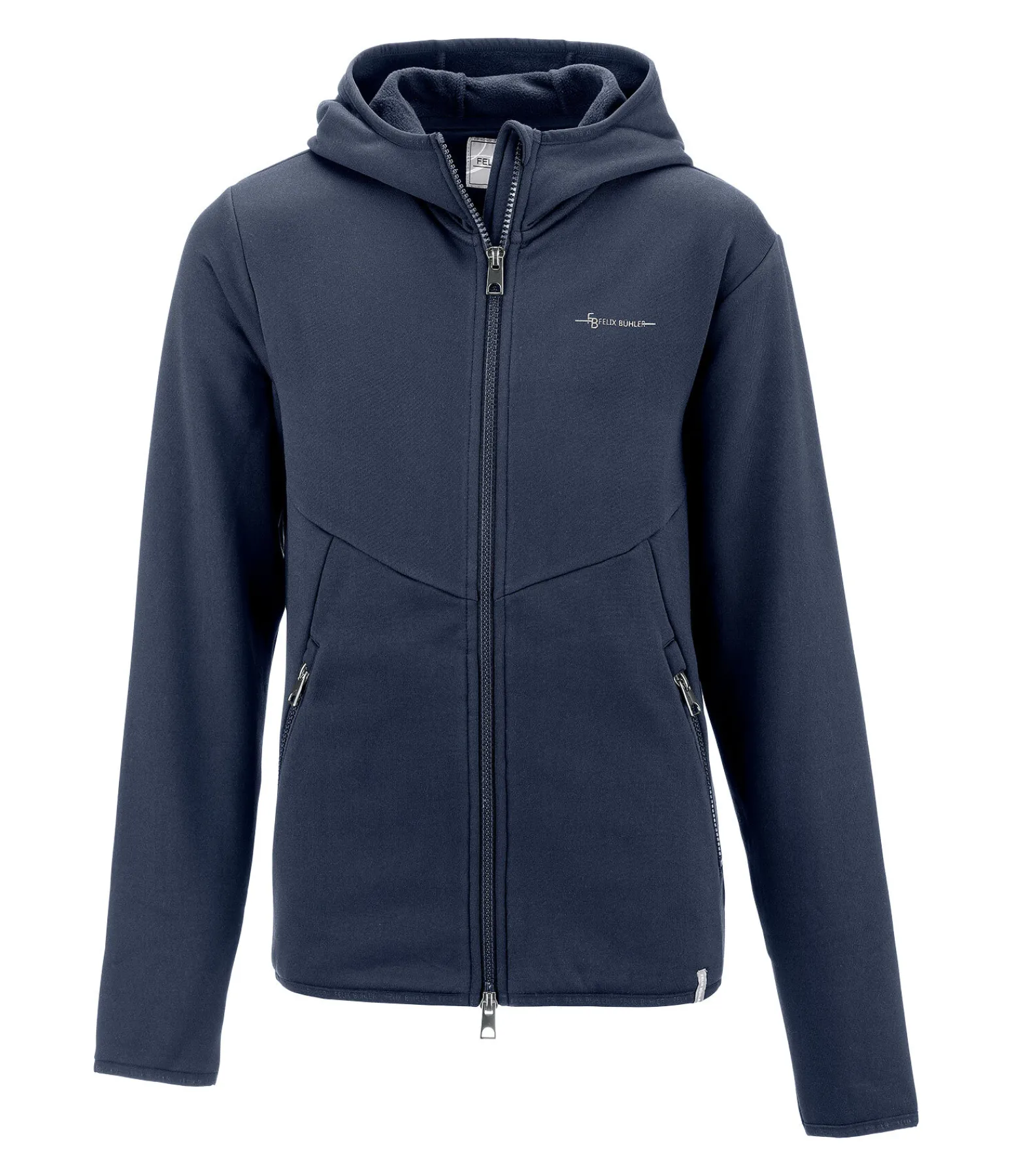 Veste à capuche sportswear en stretch Performance pour enfant. Respirante et à séchage rapide. Intérieur doux, fermeture à glissière double sens avec protège-menton, 2 poches zippées. Capuche, taille et bas des manches élastiqués. Logo Felix Bühler sur la poitrine. 95 % polyester, 4 % élasthanne.
