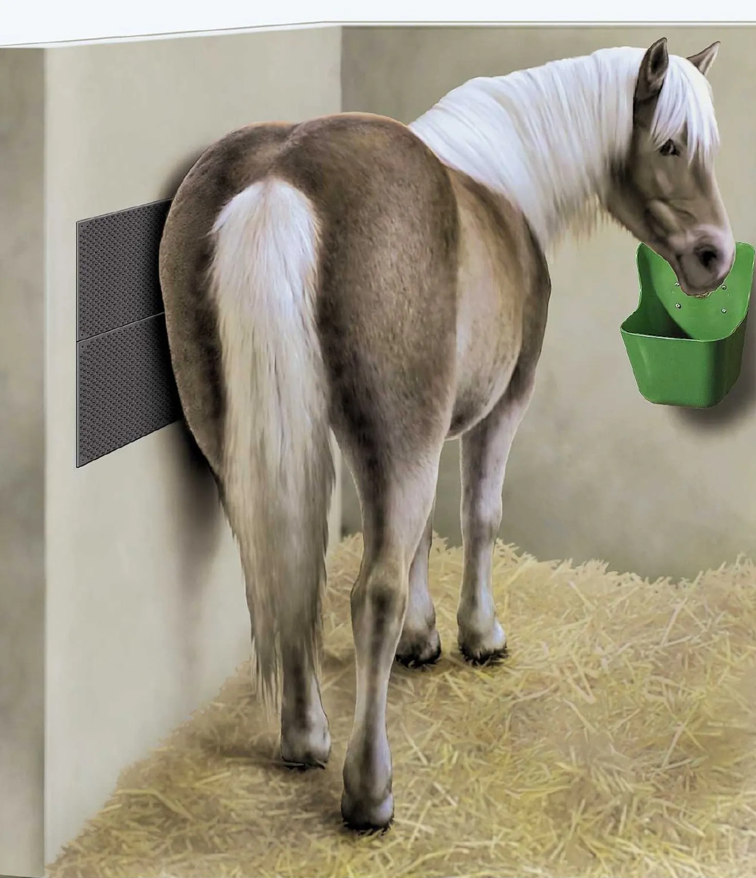 Nettoie la robe avec un effet massant, tout en limitant le risque de blessures. À installer à la hauteur du cheval. Longueur des picots 1 cm, tapis 30 x 40 cm. Couleur : noir