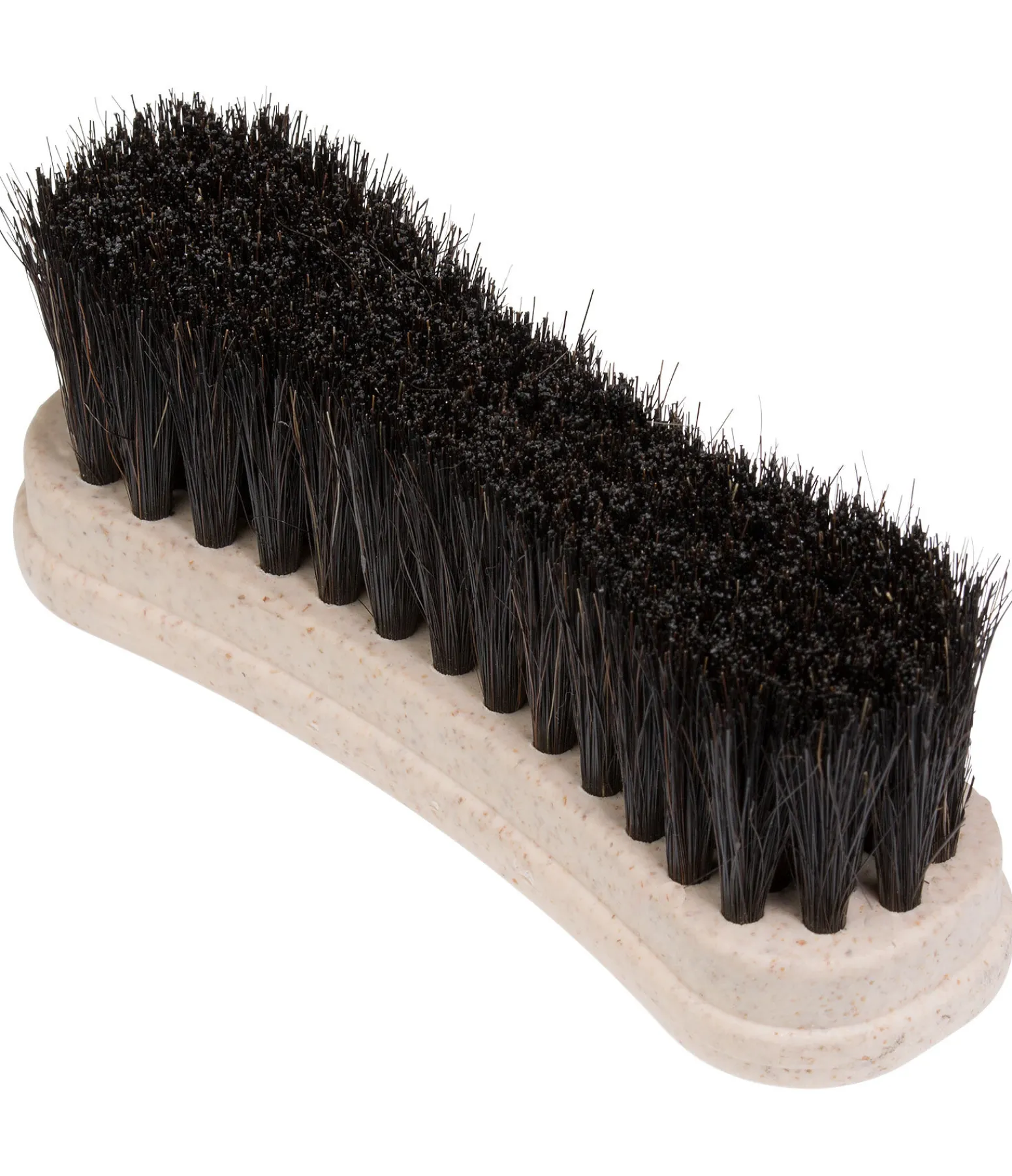 Brosse douce pour la tête. Composée à 45 % de plastique recyclé et à 55 % de fibres de paille et de riz. Poils en crin de cheval. 11,7 x 3,5 cm.