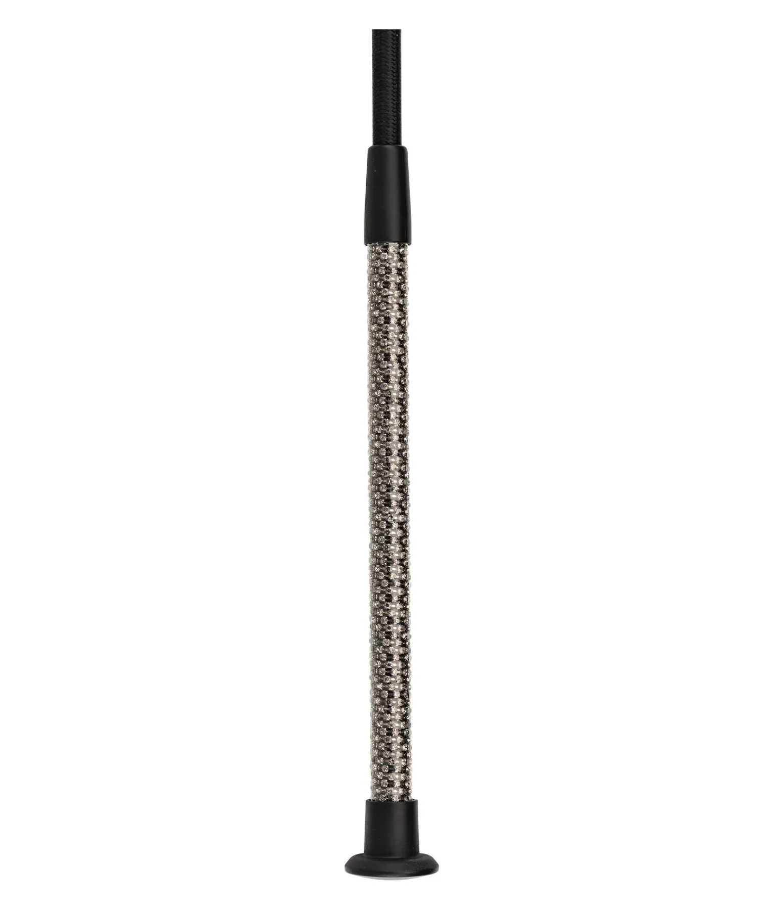 Cravache de dressage scintillante avec poignée décorée de strass et recouverte d’un film protecteur fin et transparent. Tige en fibre de verre avec revêtement en nylon.