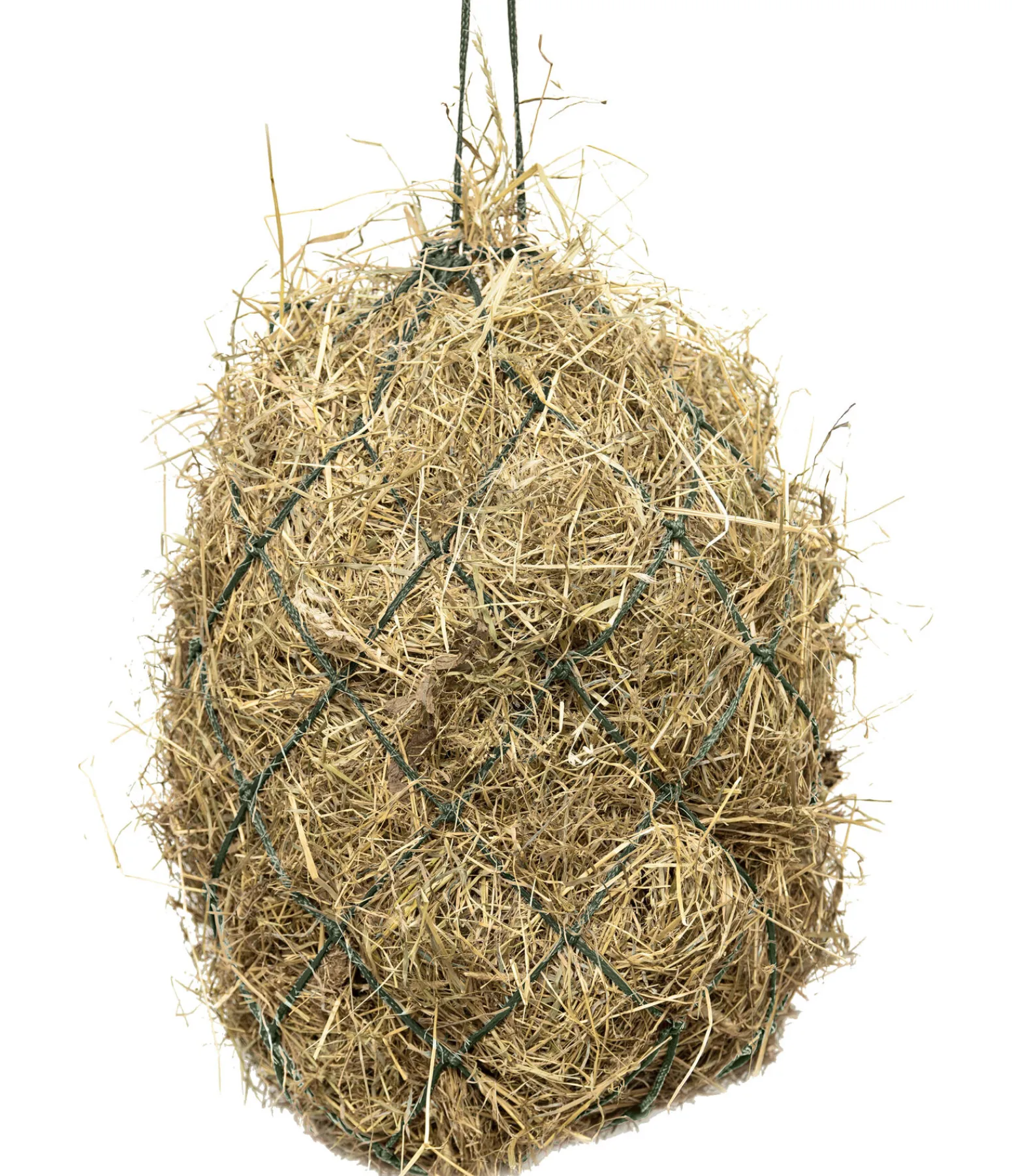 Filet à foin en polypropylène. Dimensions des mailles : 10 x 10 cm. Contenance : 4 kg. Résiste à des températures jusqu’à 100 degrés.
