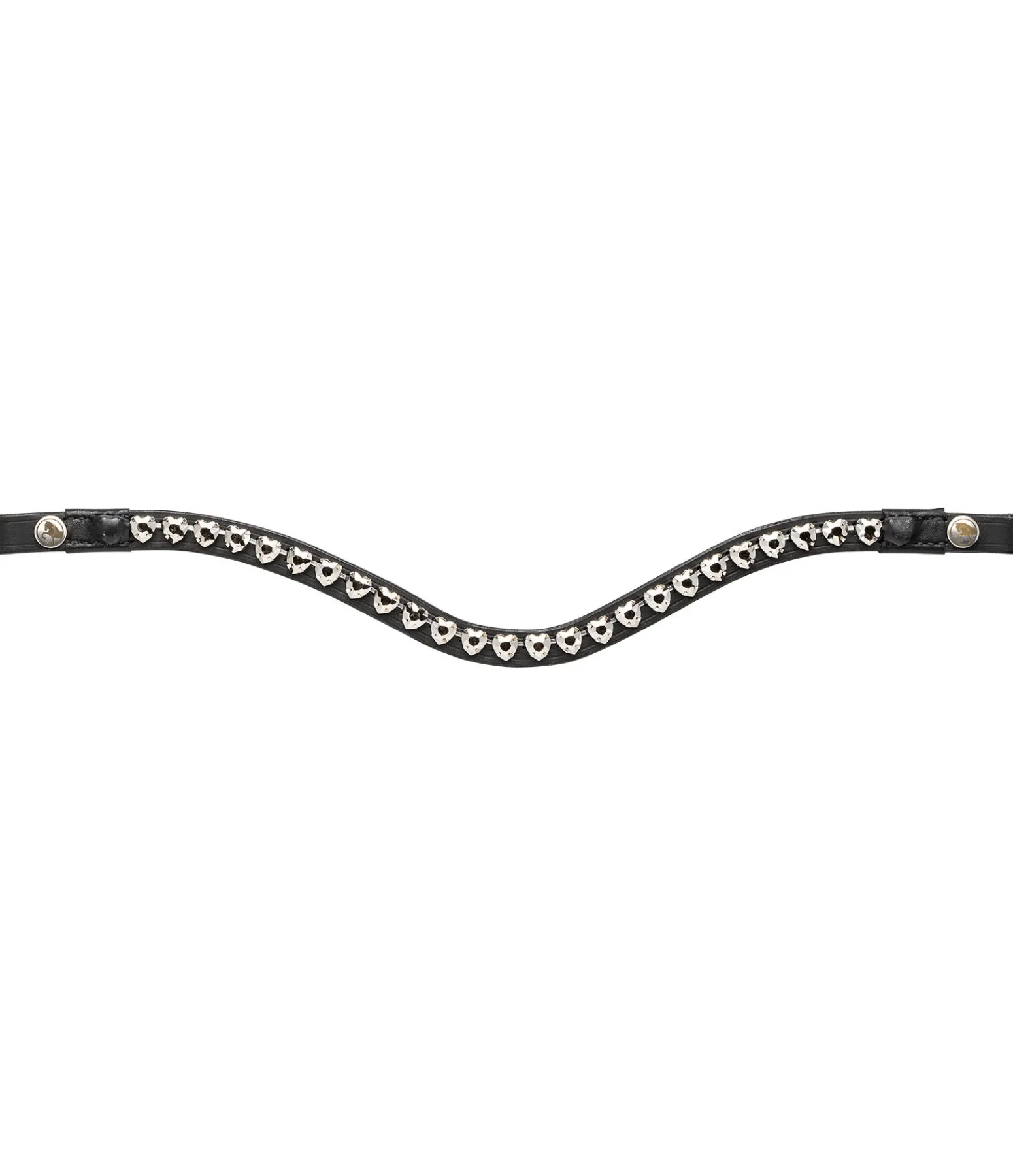 Frontal vague avec strass en forme de coeur. Boutons-pression latéraux pour une fixation rapide et facile. Cuir véritable.