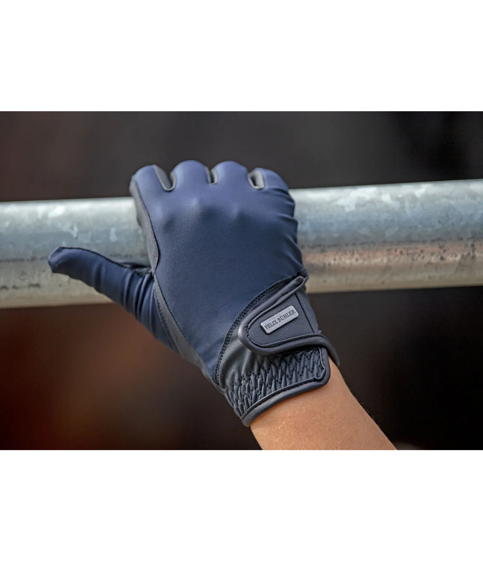 Gants d’équitation légers. Look sportif. Dos de la main extensible dans 4 directions. Élastiqués au niveau des poignets avec patte auto-agrippante. Matière respirante. Dessus 51 % nylon, 49 % polyuréthane, paume 82 % nylon, 18 % élasthanne.