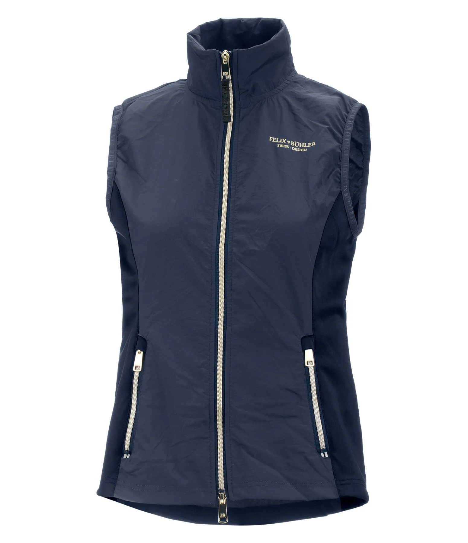 Gilet d’équitation léger et élégant en nylon. Coupe-vent. Les côtés en stretch permettent une grande liberté de mouvement et un ajustement parfait. Col montant. Fermeture à glissière double sens avec sous-patte. Deux poches latérales zippées. Broderie Felix Bühler sur la poitrine. 100 % nylon ; stretch 95 % polyester, 5% élasthanne.