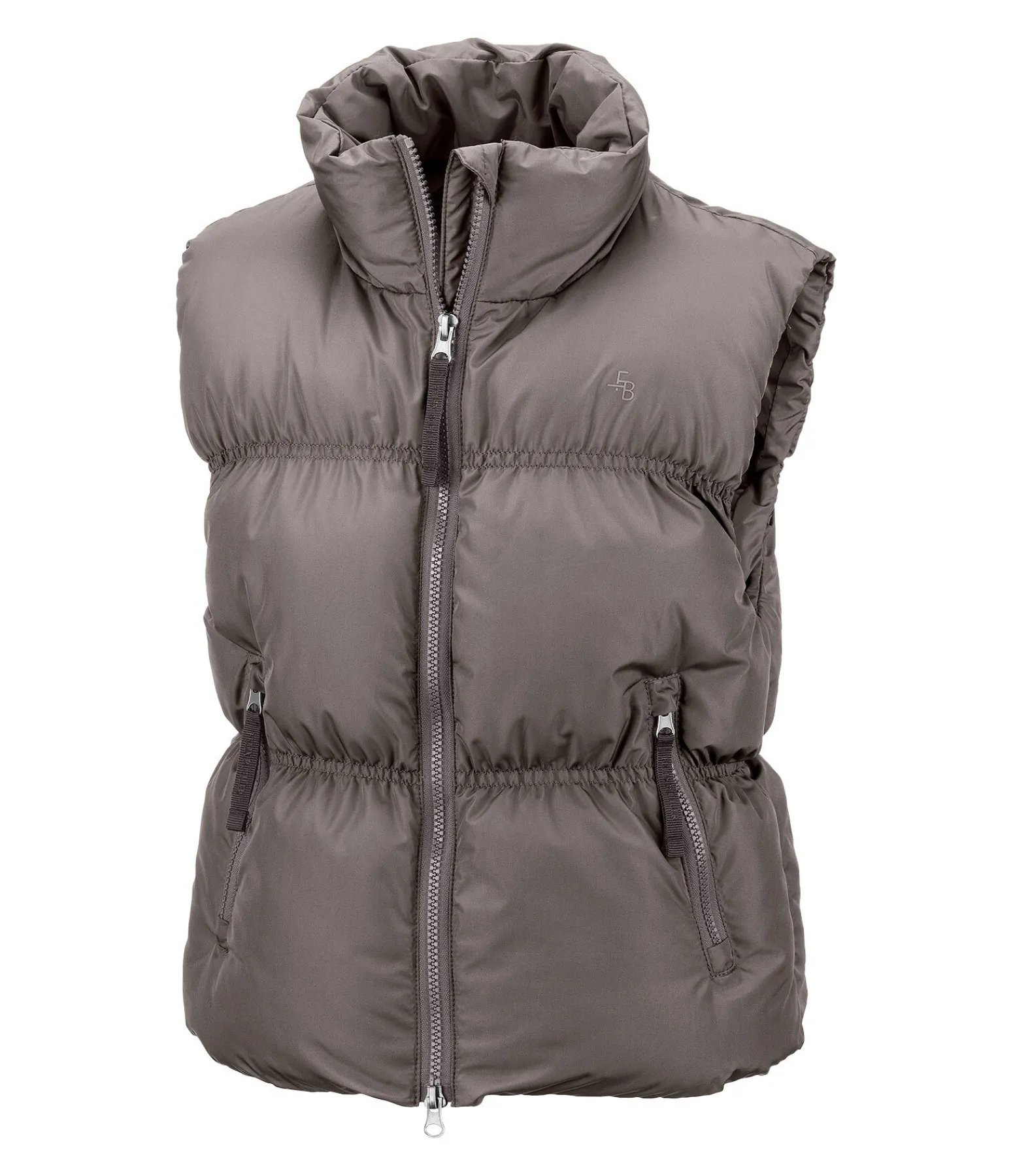 Gilet matelassé court tendance pour enfant avec col montant et garnissage en imitation duvet. Fermeture à glissière double sens avec sous-patte et protège-menton, 2 poches zippées avant. Broderie Felix Bühler sur la poitrine. 100 % polyester.