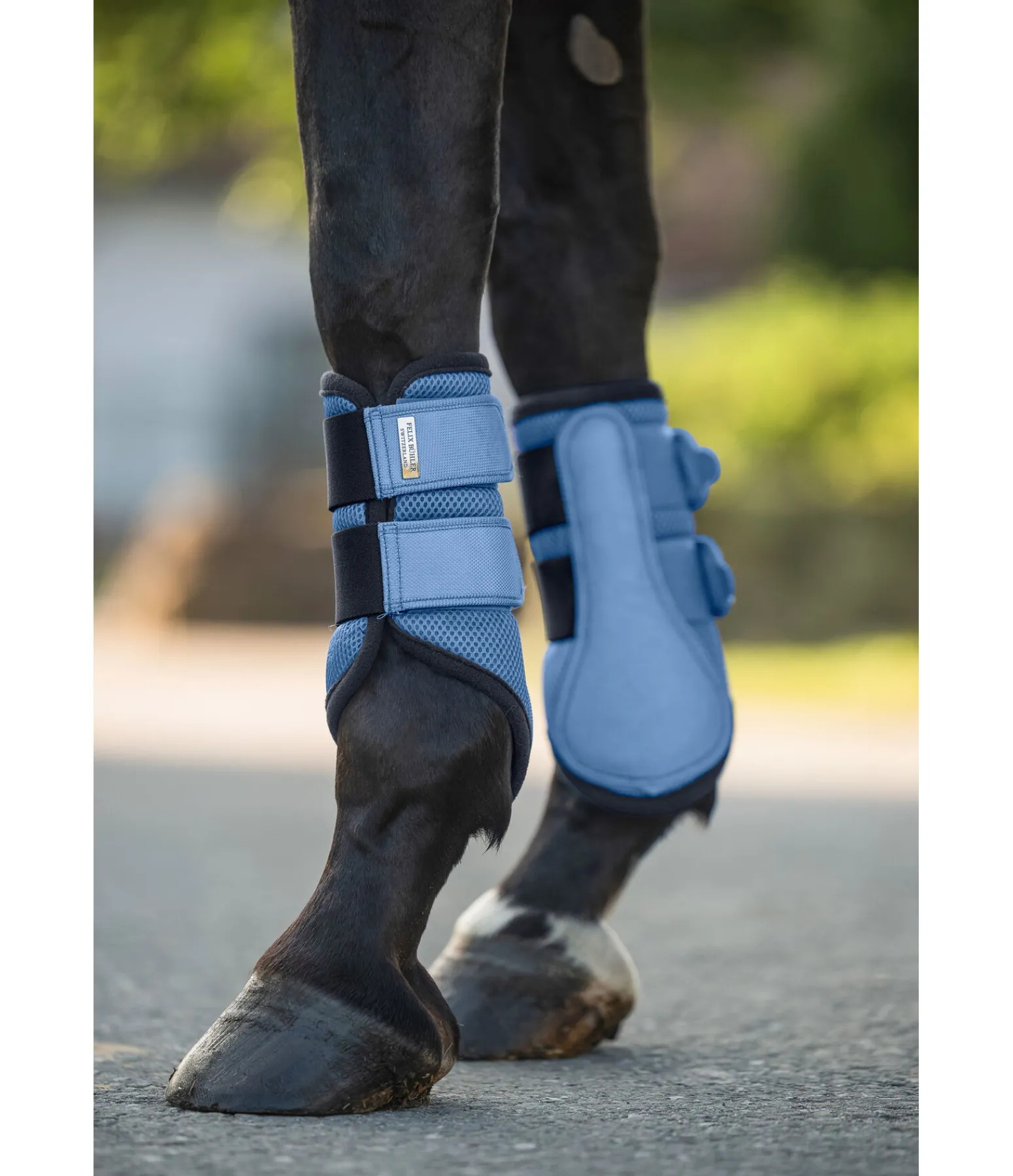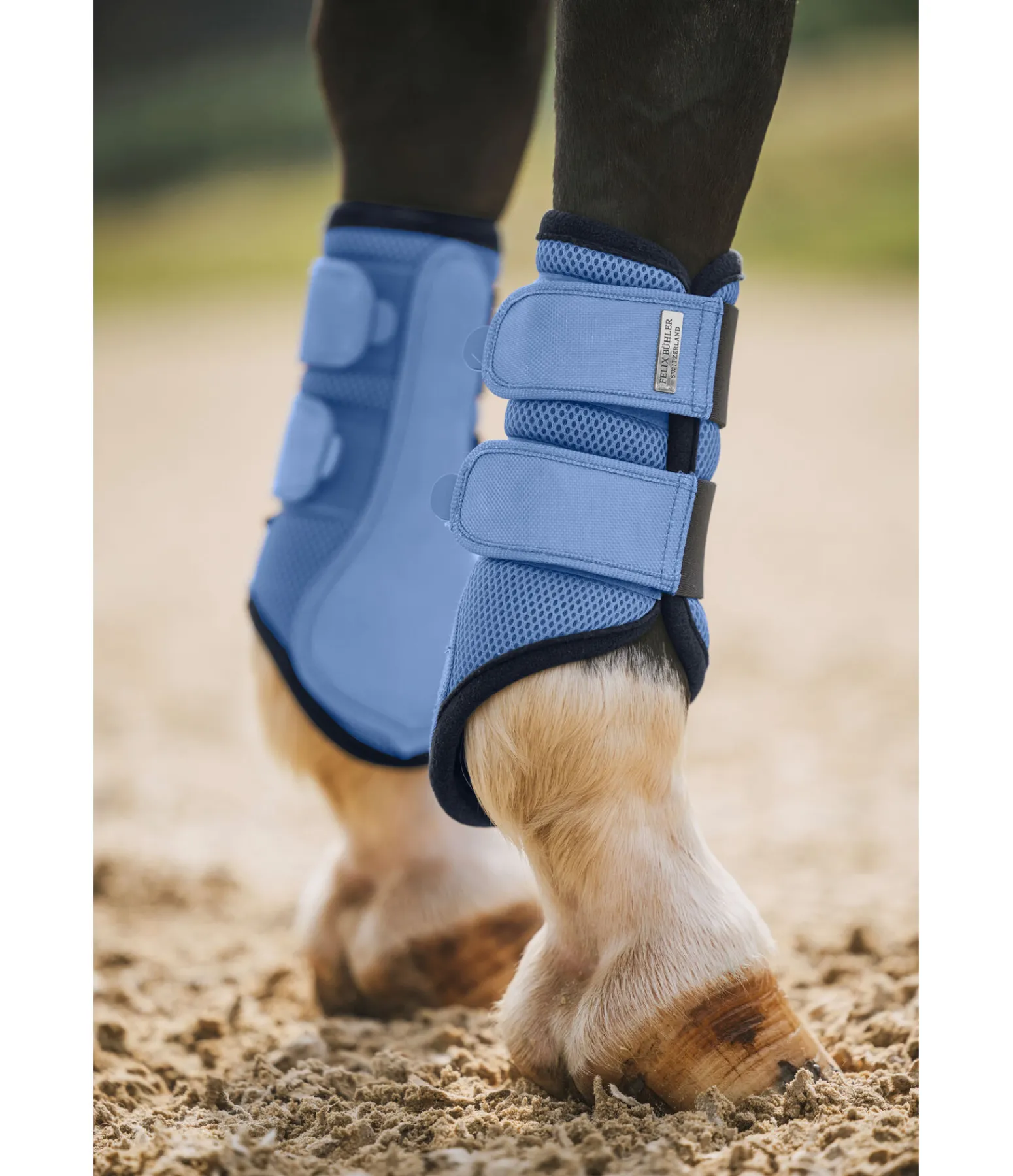 Guêtres souples pour antérieurs. Mesh extrêmement respirant pour une circulation optimale de l’air. Pattes auto-agrippantes élastiquées pour un ajustement parfait. Petit plaque métallique avec logo. Renfort sur la face intérieure pour une protection supplémentaire contre les chocs. Bordure en polaire pour éviter les irritations dues aux frottements. 100 % polyester. Vendues par paires.
