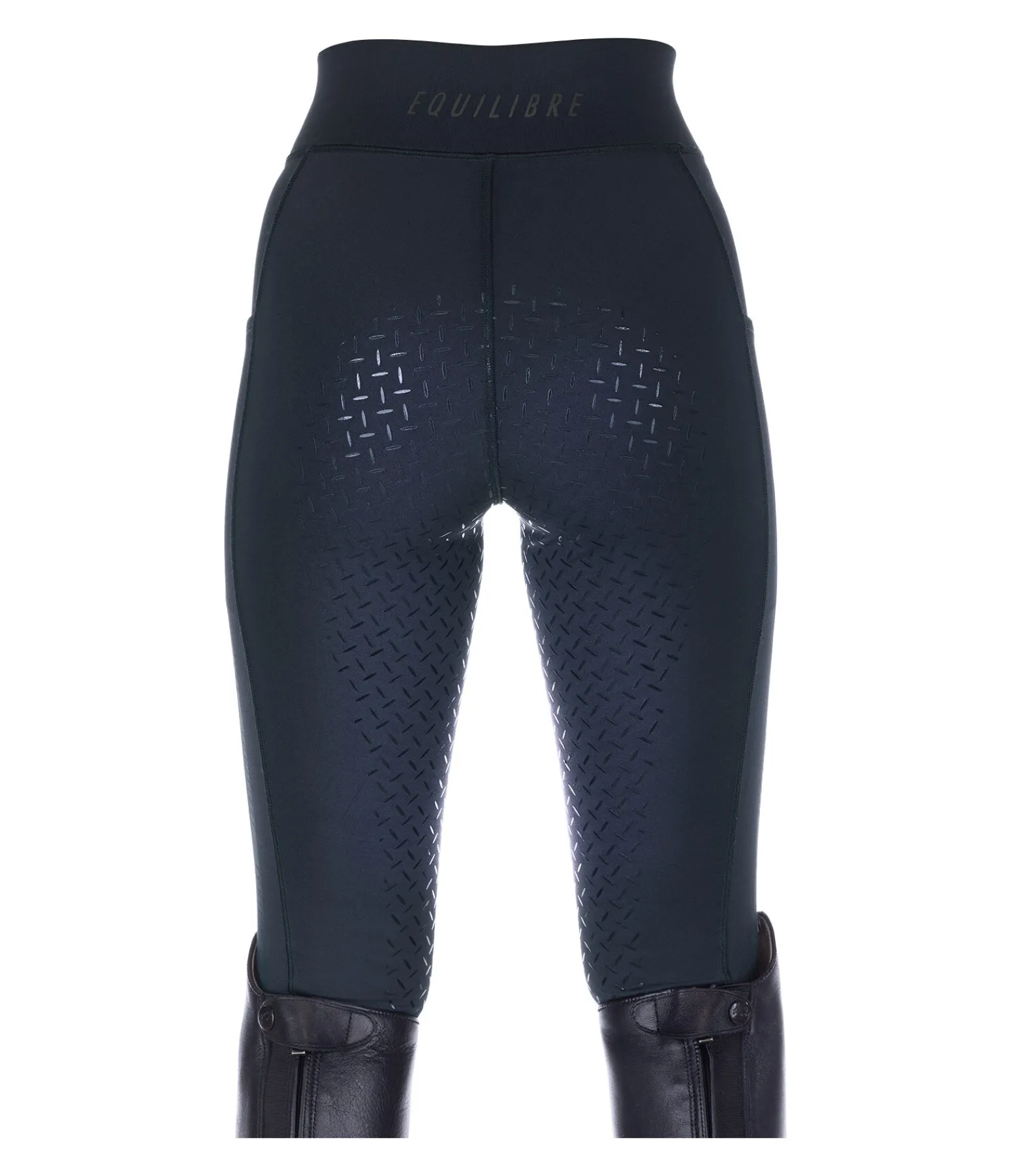 Legging d’équitation enfant sportswear. Matière respirante douce et extensible dans 4 directions. Fond intégral en silicone. 2 poches latérales pour téléphone portable. Bandes floquées avec reflets multicolores sur le côté. Logo marque avec reflts multicolores devant et à la ceinture arrière. 86 % polyester, 14 % élasthanne.