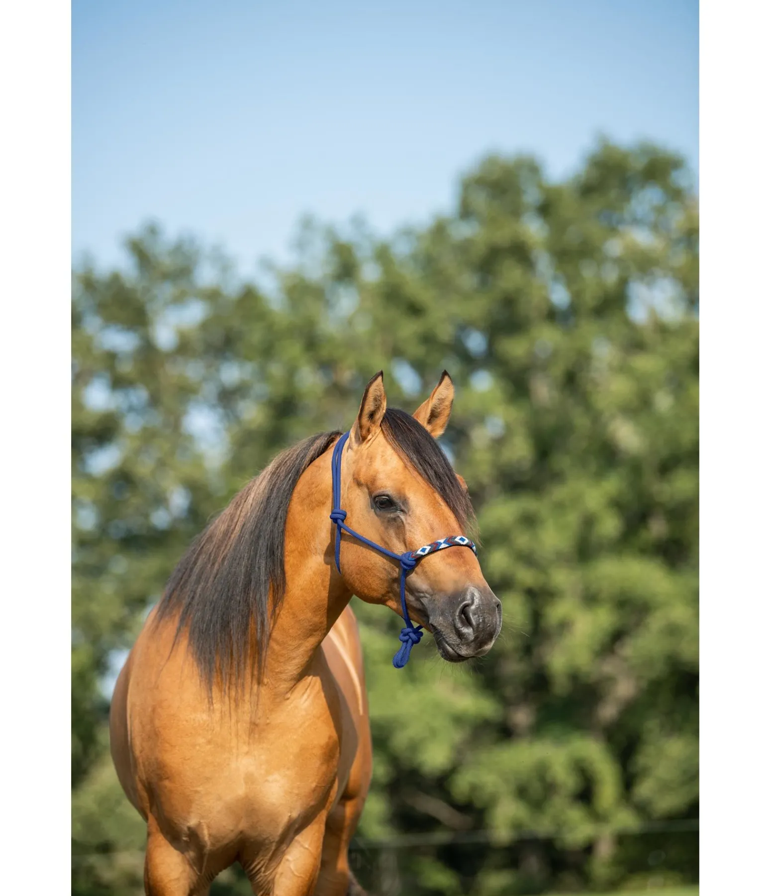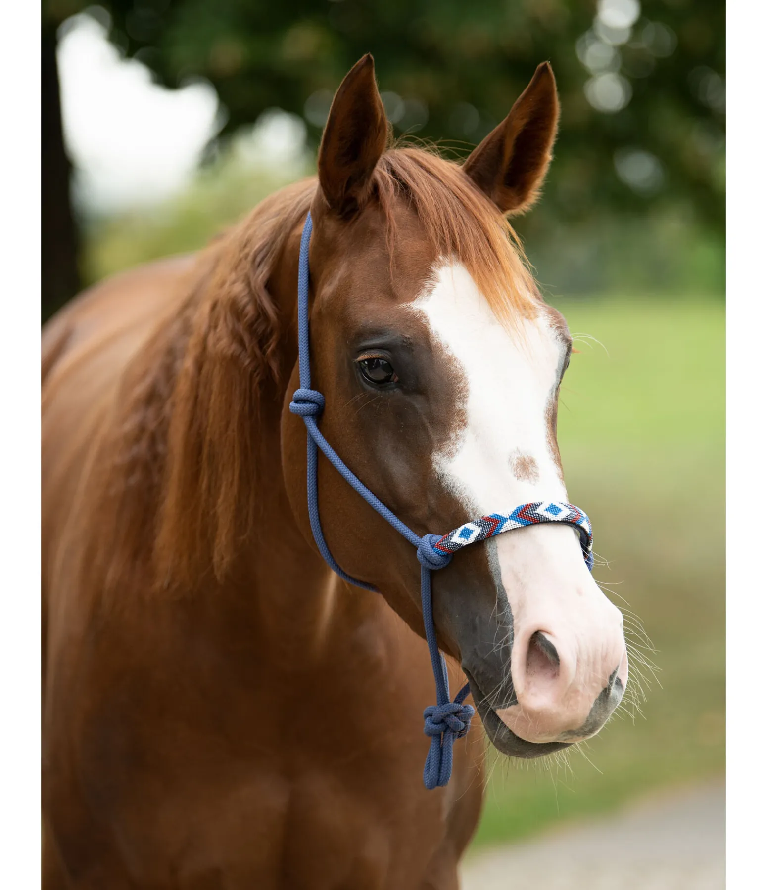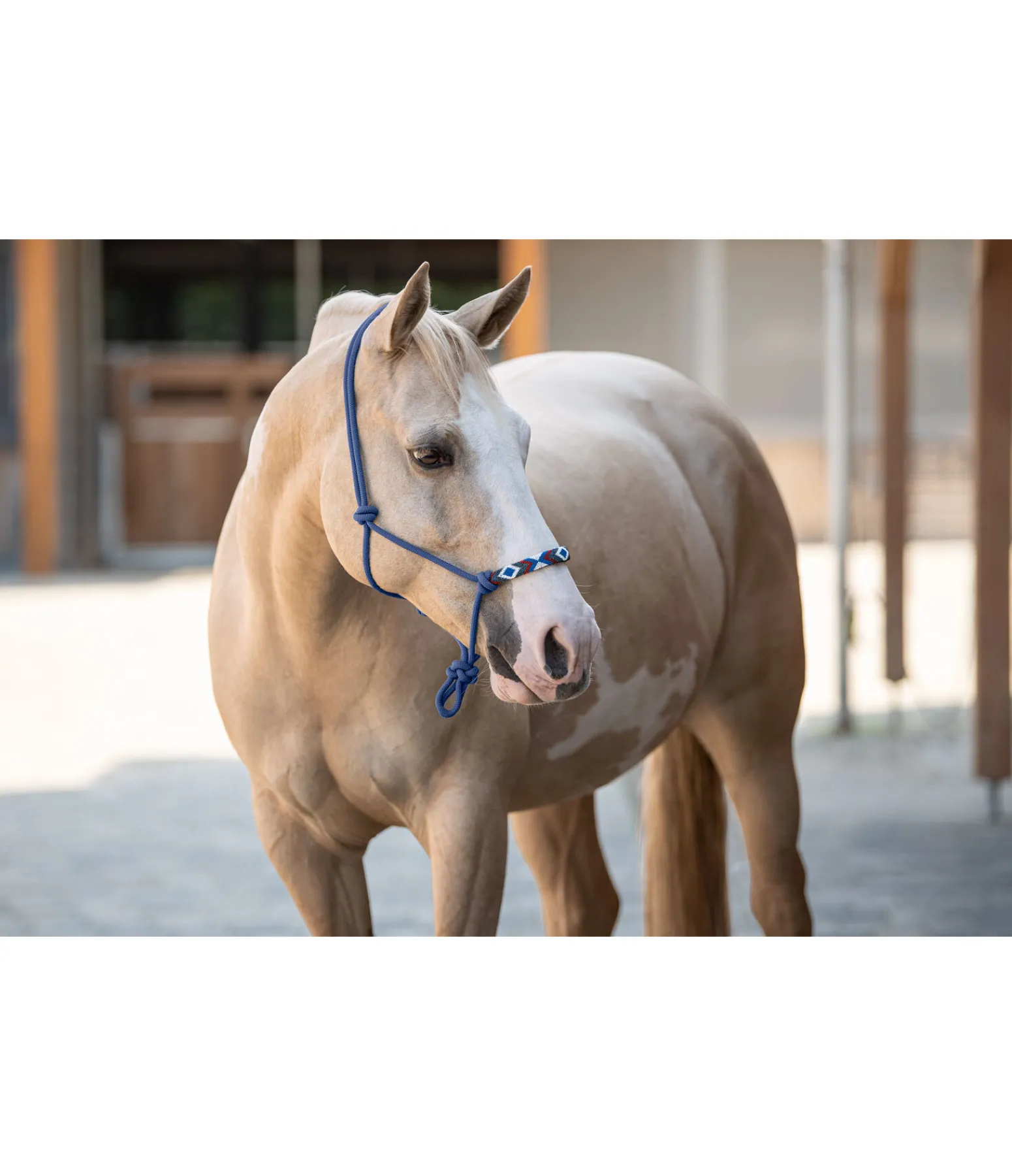 Beau licol à noeuds robuste. Avec doublure à la têtière et muserolle. Orné de perles formant un superbe motif. Épaisseur des cordes 8 mm. 100 % polypropylène.
