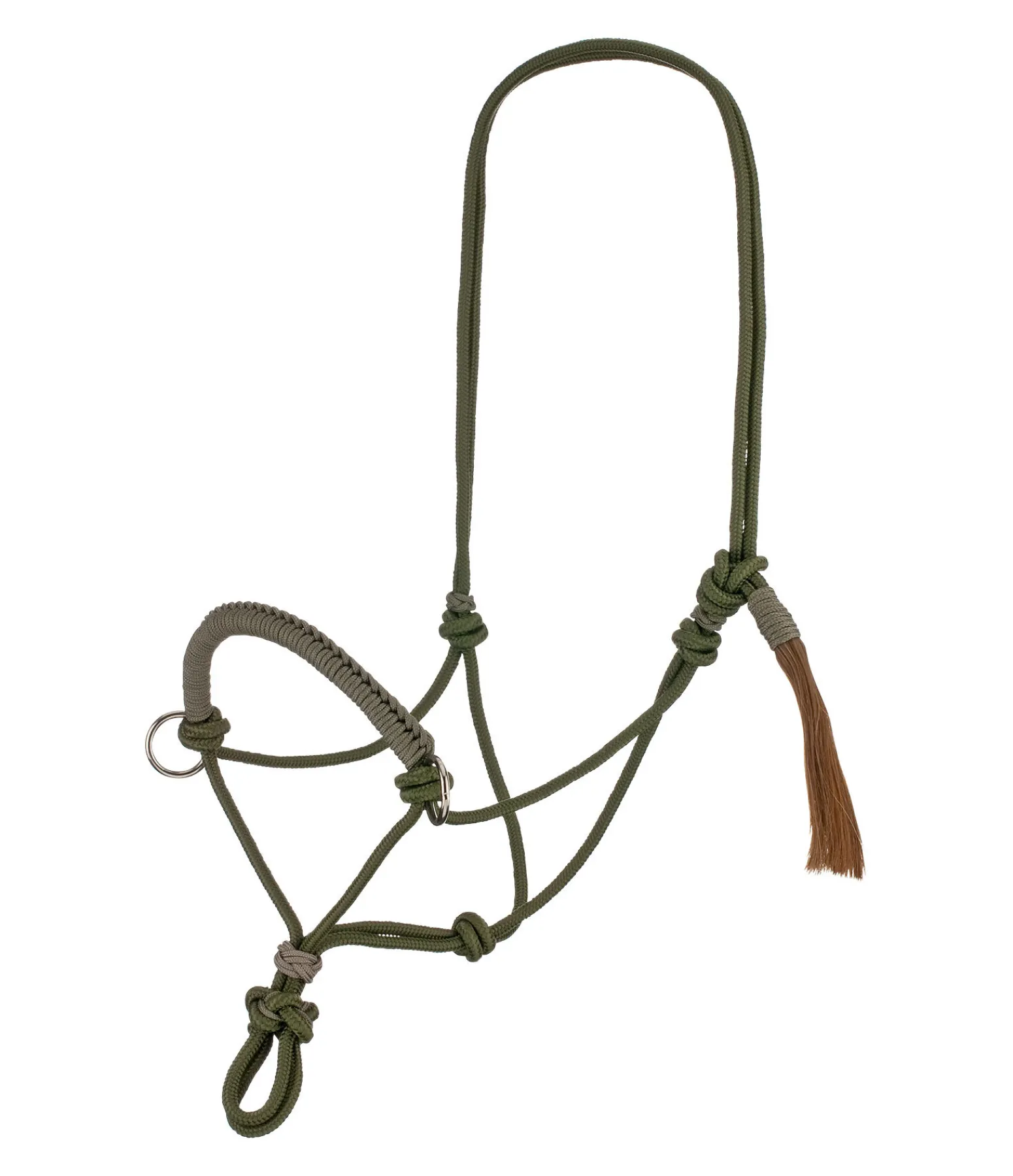 Magnifique licol à noeuds avec muserolle réglable. Idéal pour une communication précise avec le cheval. Muserolle renforcée et anneaux pour rênes. Épaisseur de la corde 6 mm. Avec pompon. 100 % polypropylène.