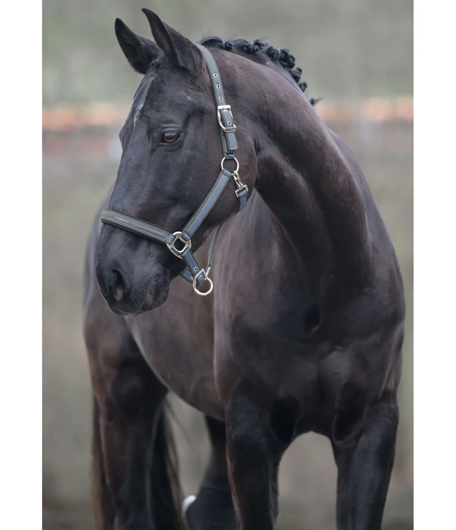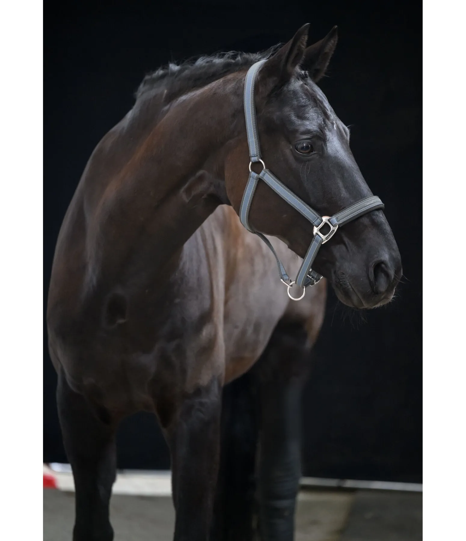 Licol rayé dans un look sportif avec élégante bande cousue sur la muserolle. Doublure douce en caoutchouc chloroprène sur la têtière, la muserolle et les montants. Têtière et muserolle réglables. Licol 100 % polypropylène.