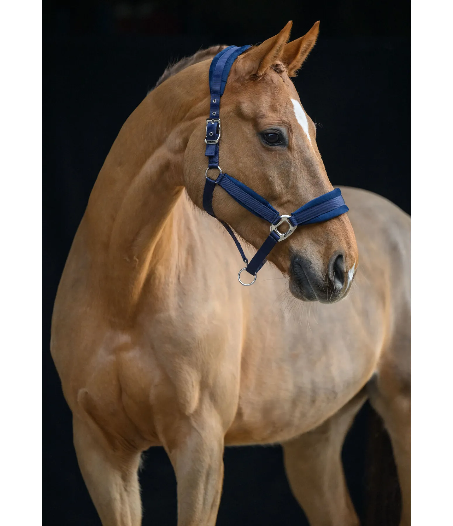 Licol élégant avec doublure effet velours sur la têtière, la muserolle et les montants. Têtière réglable des deux côtés et muserolle à réglage facile. Bouclerie argentée. 100 % polypropylène.