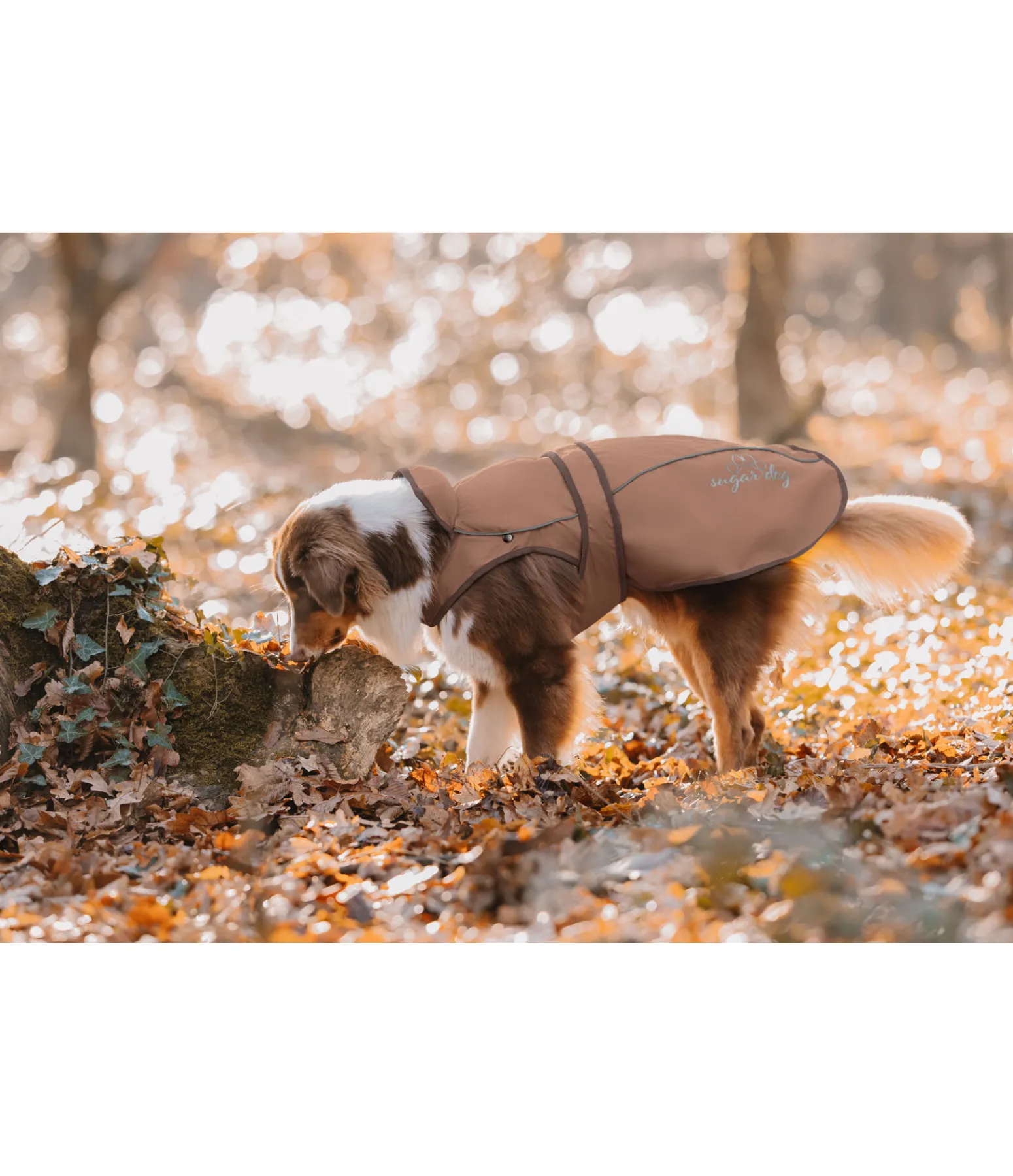Manteau sportif pour chien avec doublure intérieure amovible par boutons-pression. Avec passepoil réfléchissant et impression logo. Col réglable par cordon de serrage. Enfilage facile grâce aux bandes auto-agrippantes au poitrail et au ventre. Aucun risque que la couverture glisse grâce aux courroies de cuisses dissimulées. Petite boucle à l’intérieur pour suspendre le manteau lorsqu’il n’est pas utilisé. Dessus en nylon Oxford, dessus doublure intérieure 65 % polyester, 35 % coton-polaire, rembourrage doublure intérieure 100 % coton.