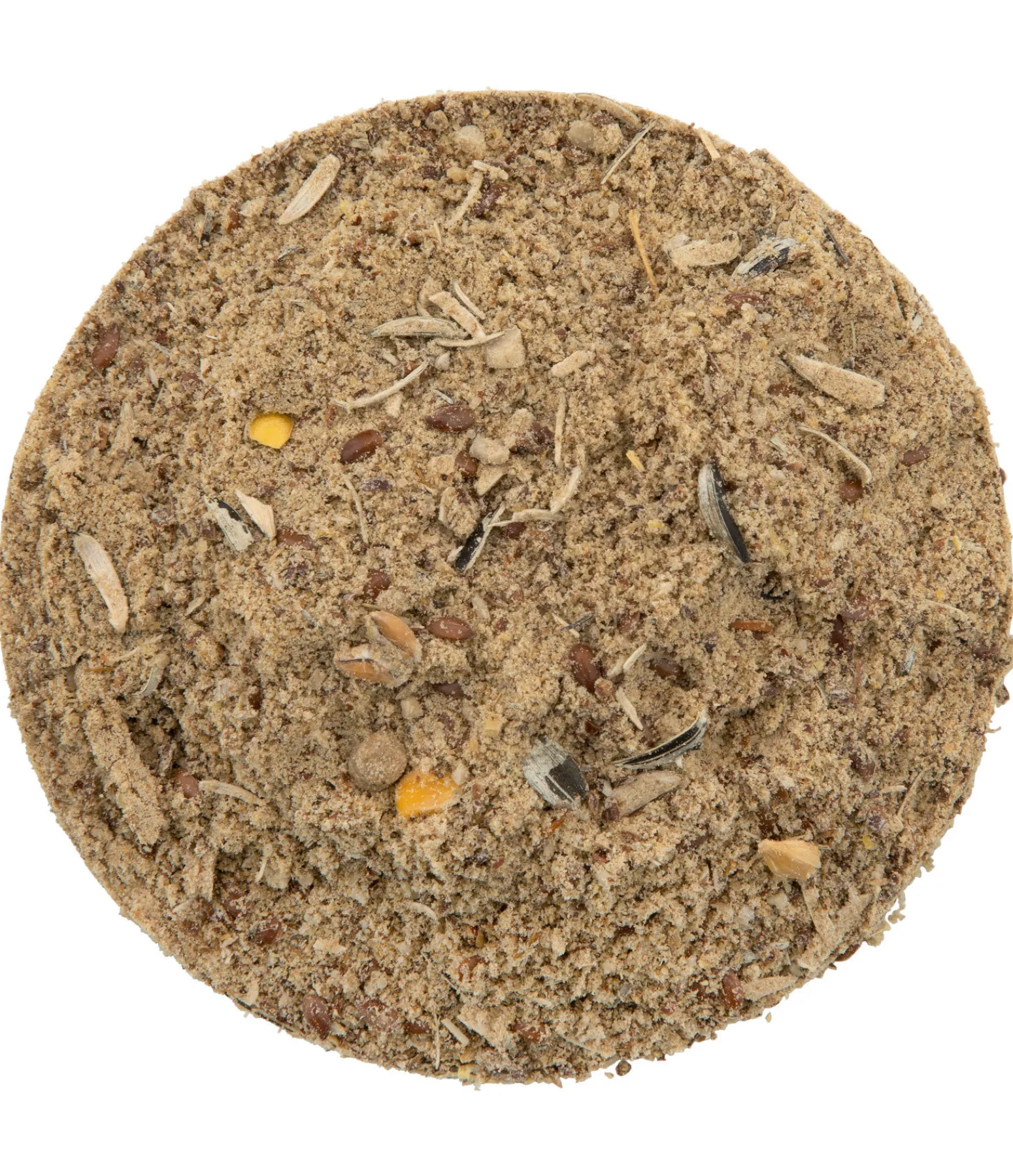 Composition : Son de riz, tourteau de lin, graines de lin, graines de tournesol, topinambour, drêche résidus de malte, huile de lin, levure de bière, enveloppes de psyllium.
