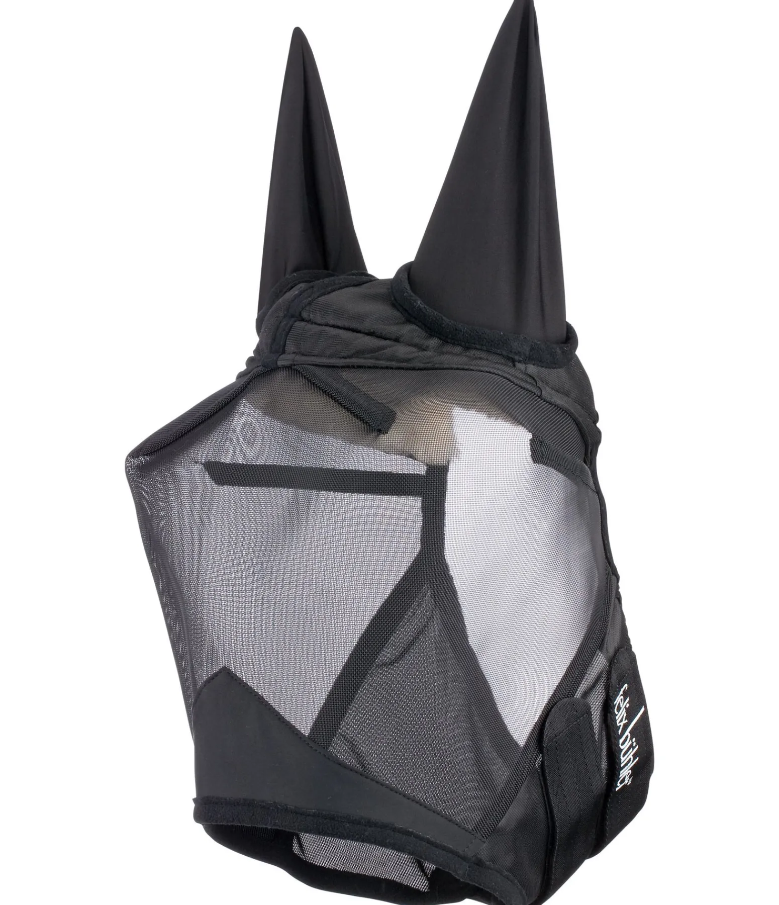 Masque anti-mouches et anti-salissures. Idéal pour les chevaux sensibles. Filet à maille serrée avec coutures renforcées. Bloque au moins 50 % des rayons UV tout en offrant une bonne visibilité. Filet conçu dans une matière extensible absorbant l’humidité pour protéger les oreilles. Efficace contre les moustiques et autres insectes. Doublure en polaire Teddy douce au niveau du front pour un confort optimal et bordure en polaire autour du chanfrein pour éviter les irritations dues aux frottements, élastiqué autour de l’encolure pour un ajustement parfait. Avec passage de toupet et double patte auto-agrippante pour un maintien sûr. 100 % polyester.