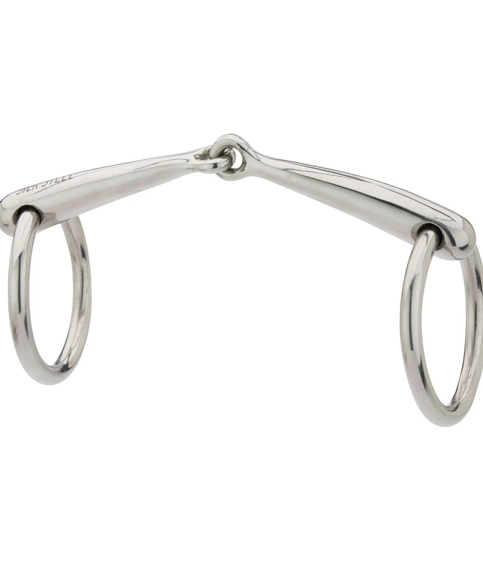 Mors à anneaux simple brisure en acier inoxydable. Épaisseur 12 mm. Diamètre des anneaux : 55 mm.