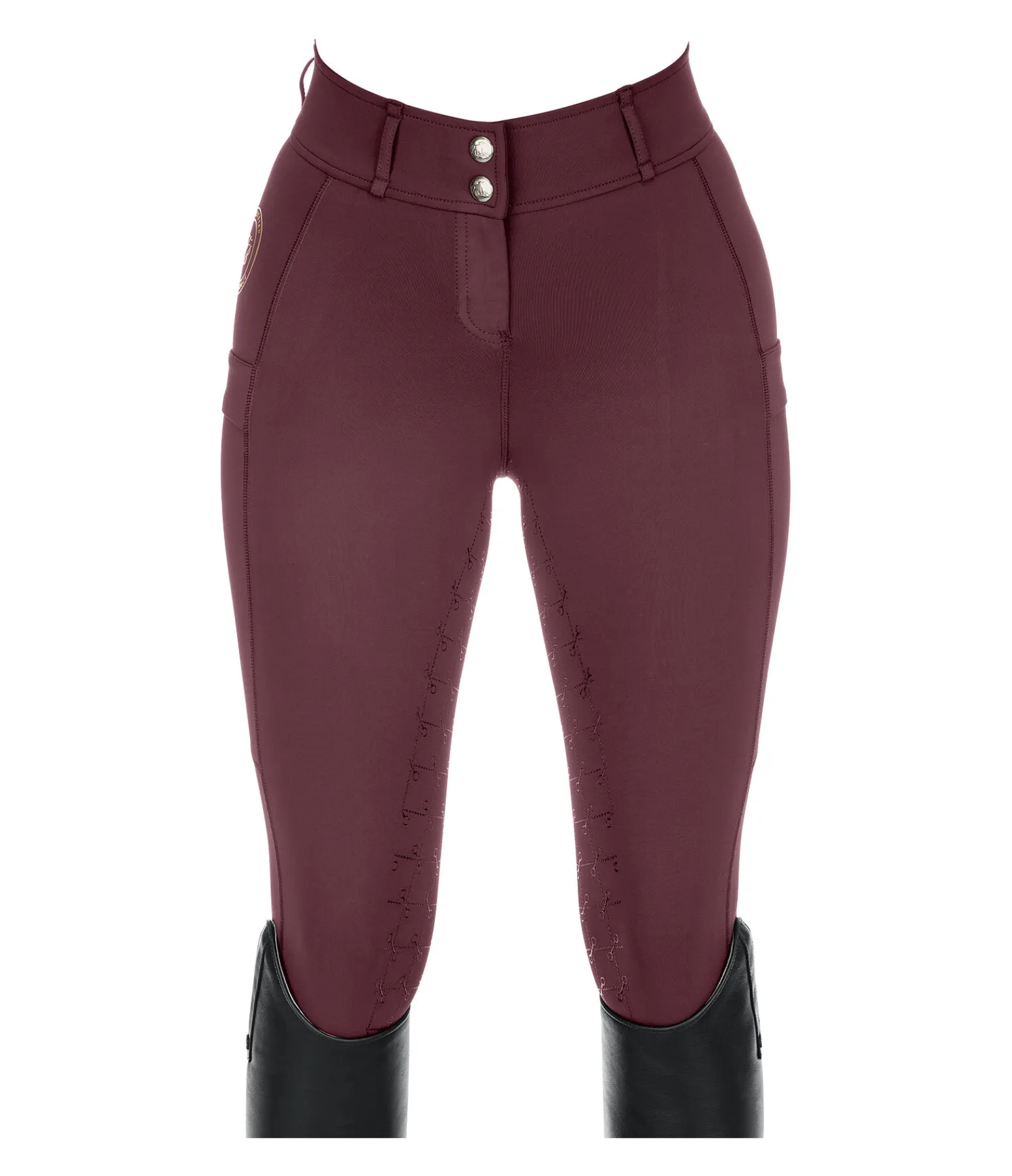 Pantalon d’équitation à fond intégral avec motif de mors en silicone. Stretch Performance extensible dans 4 directions pour un effet sculptant garanti. Matière legging respirante à séchage rapide. Ceinture extra large avec passants. Une poche zippée arrière. Une poche pour téléphone portable sur chaque jambe. Aucune couture aux genoux. Bas de jambe extensible. Badge et signature Felix Bülher scintillants. 78 % polyester, 22 % élasthanne.