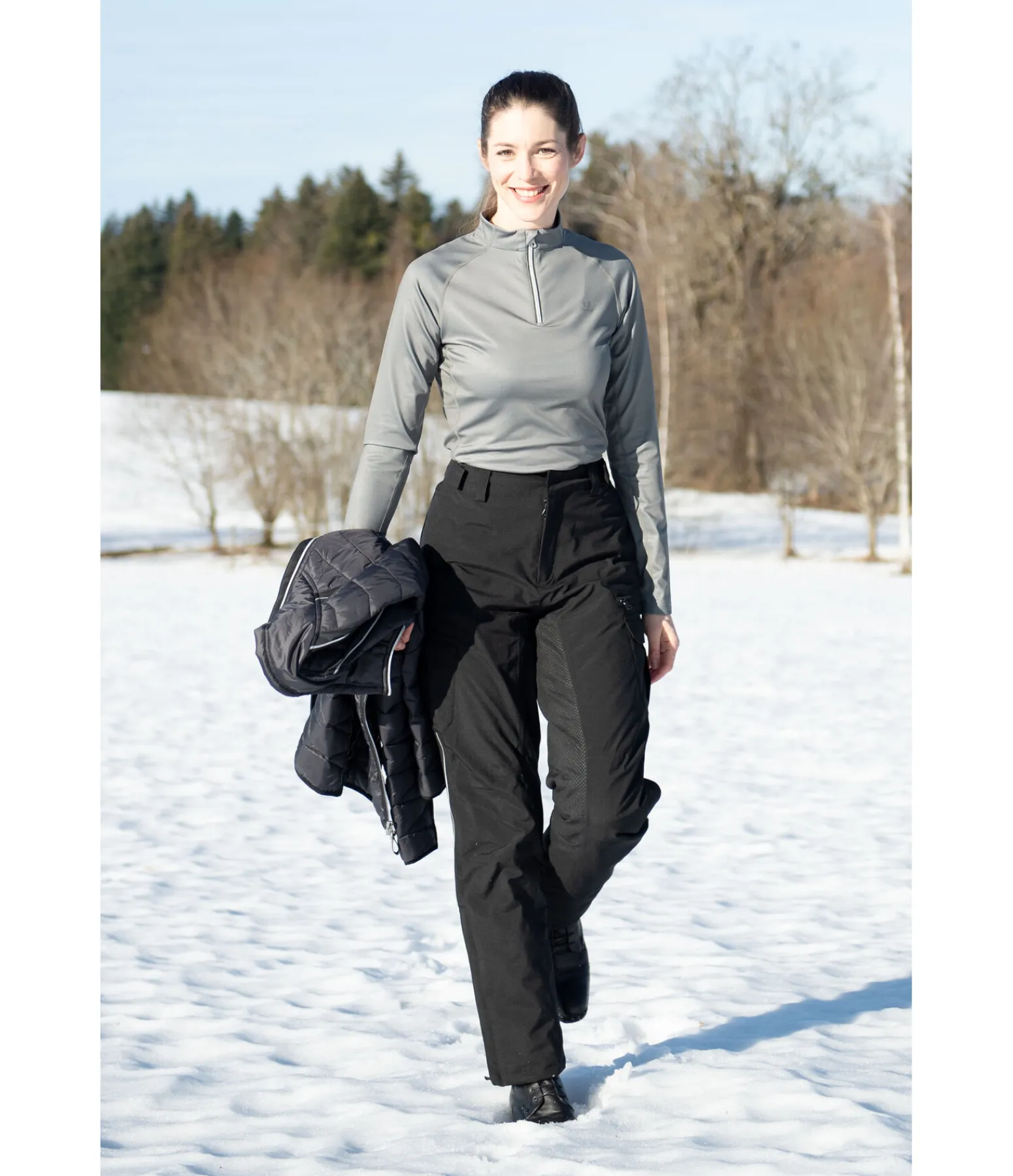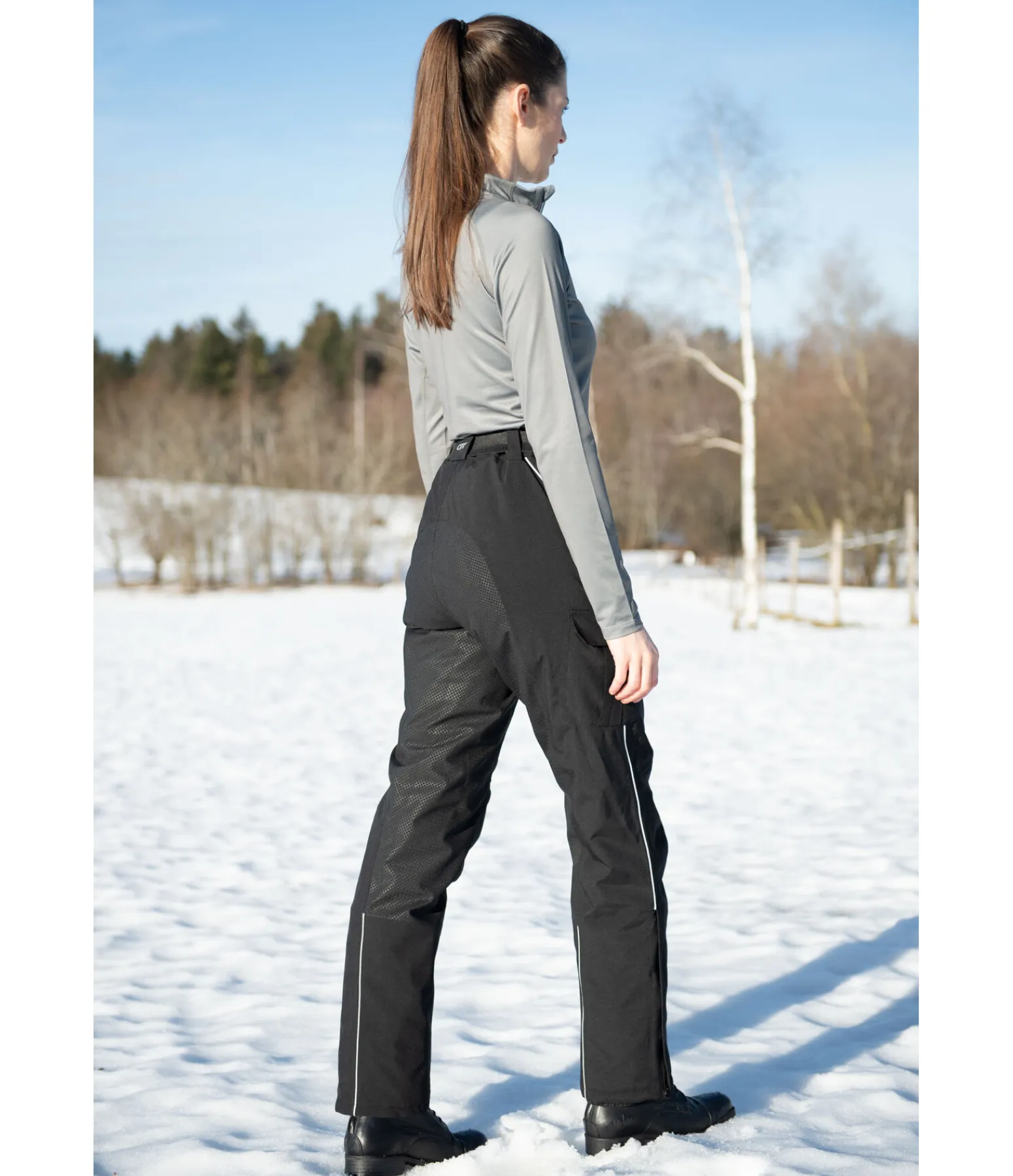 Pantalon d’équitation thermique rembourré et imperméable (8000 mm) avec grip partiel. Pattes auto-agrippantes à la ceinture pour le réglage. Bas de jambe zippé. Poche extérieure zippée. Extérieur 100 % polyester. Doublure et rembourrage 100 % polyester.
