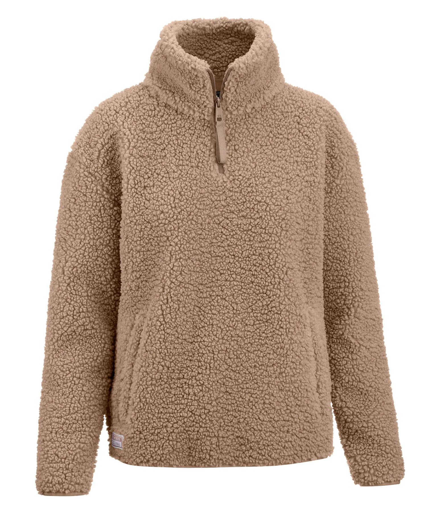 Pull-over doux en sherpa. Col montant zippé. Deux poches latérales doublées en polaire douce. Bord élastiqué en bas des manches et à la taille. Badge en tissu Felix Bühler. 100 % polyester.