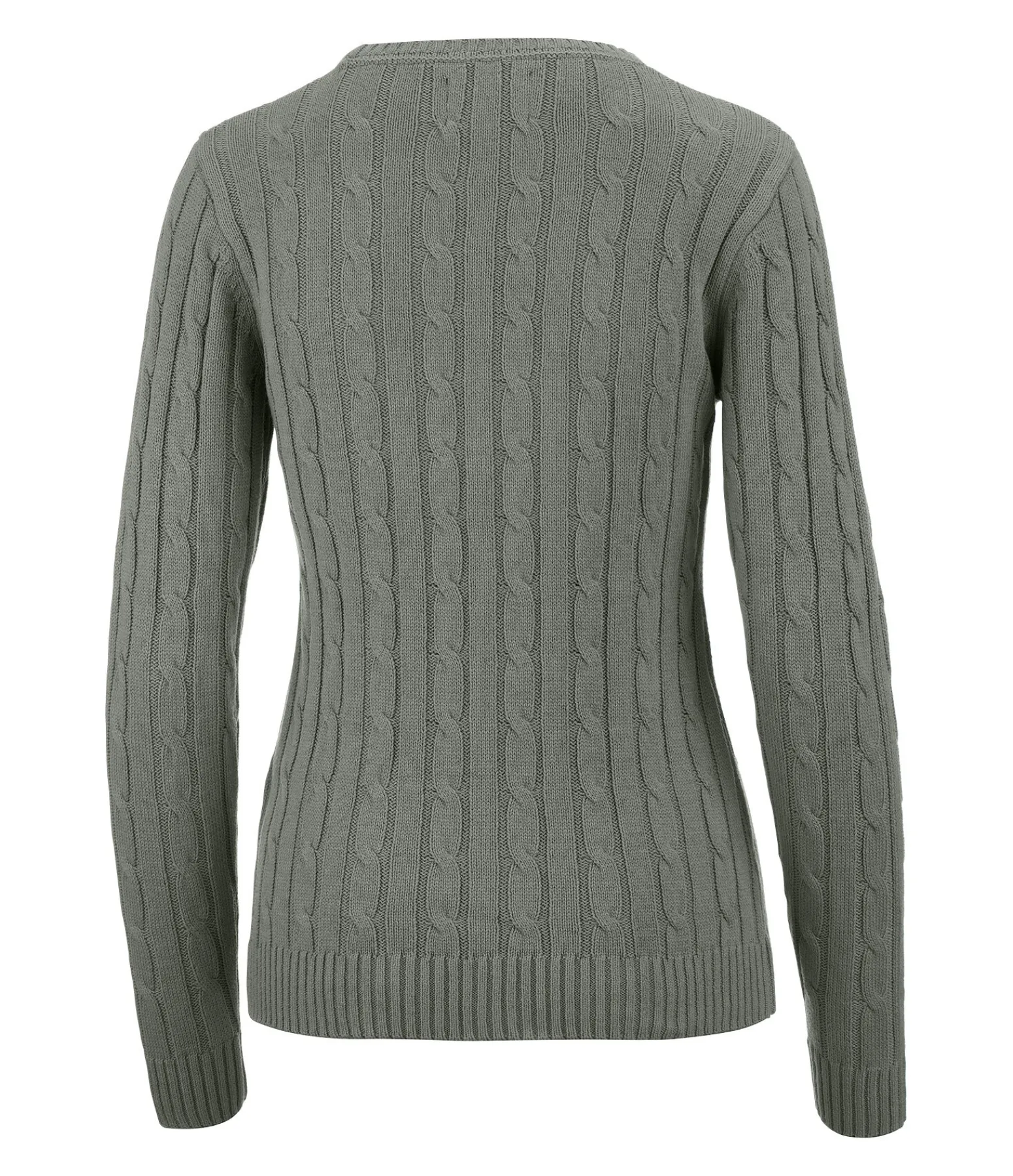 Pull-over à col rond classique et doux en tricot torsadé. Broderie Felix Bühler sur la poitrine. Bordure côtelée en bas des manches et à la taille. 60 % coton, 40 % polyacrylique.