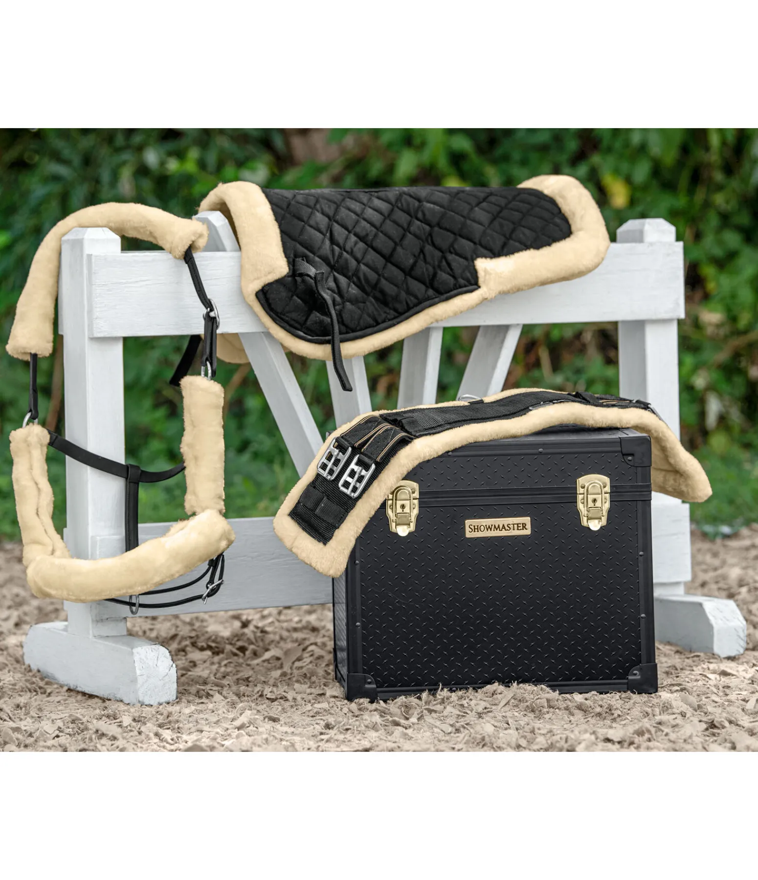 Sangle en nylon résistante à la déchirure avec empiècements élastiques des deux côtés, anneau central en D et boucles à rouleau. Doublure en polaire Teddy extra douce. Largeur 14,5 cm.