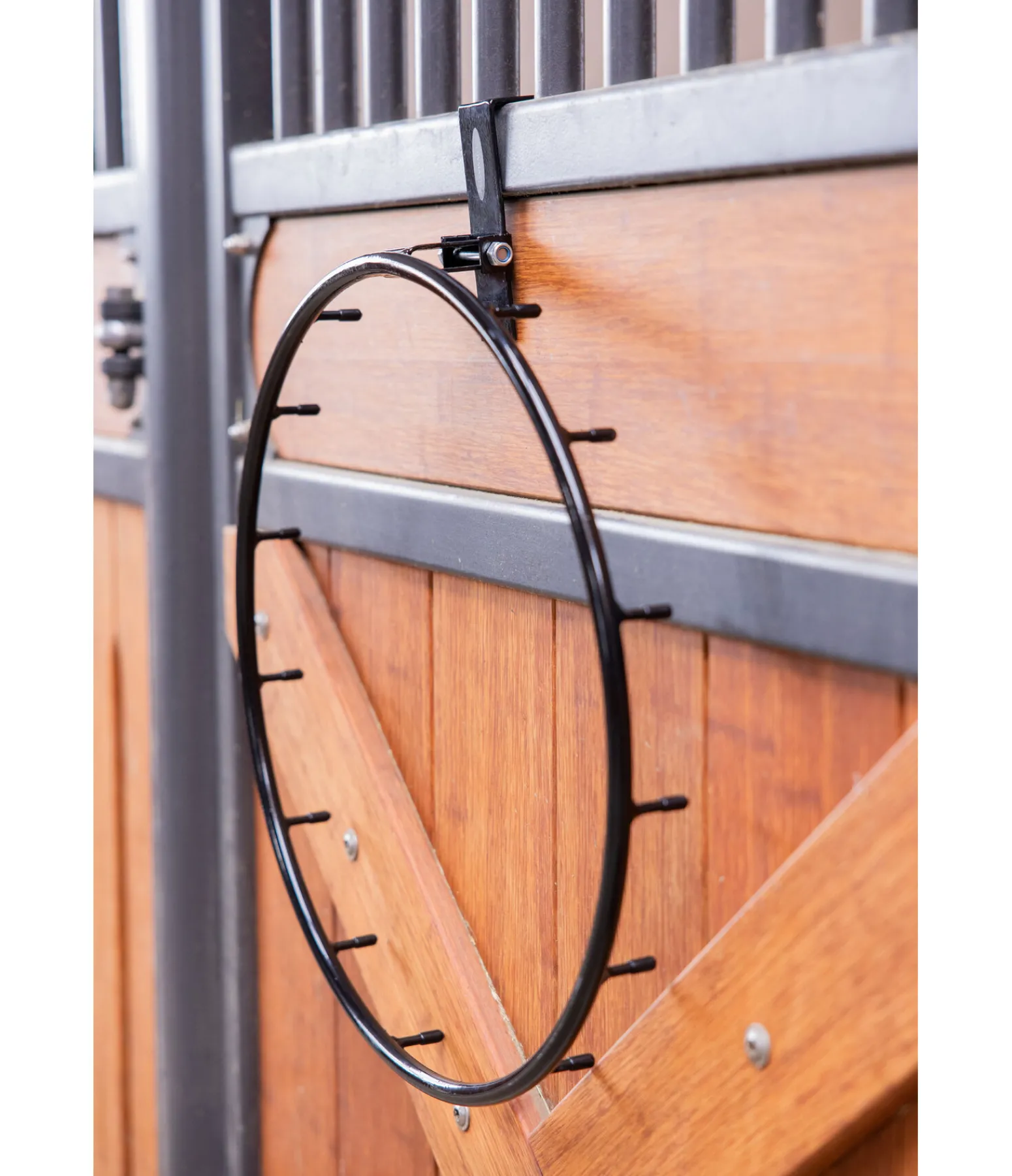 Support pliable pour remplir un filet à foin. Crochet de fixation. 14 points d’accroche pour fixer le filet à foin. Support pratique et peu encombrant pouvant être replié avec les points d’accroche vers l’arrière. Joli autocollant SHOWMASTER. Dimensions : diamètre 45 cm, crochet : largeur 4 cm / hauteur 5 cm.