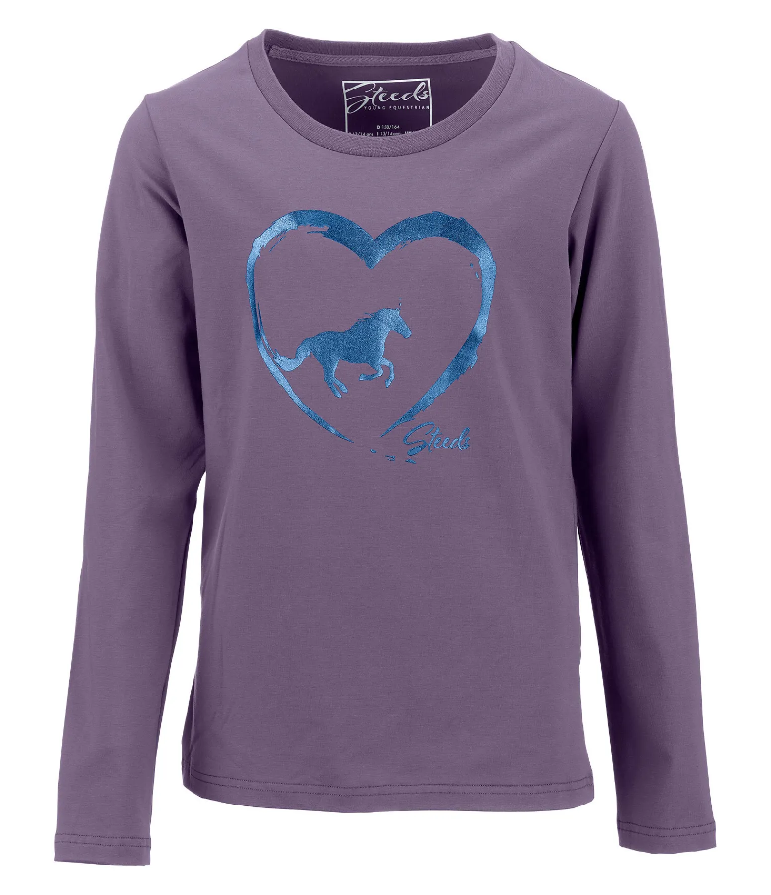 Joli T-shirt à manches longues. Col rond. Motif coeur scintillant et cheval sur la poitrine.100% coton.