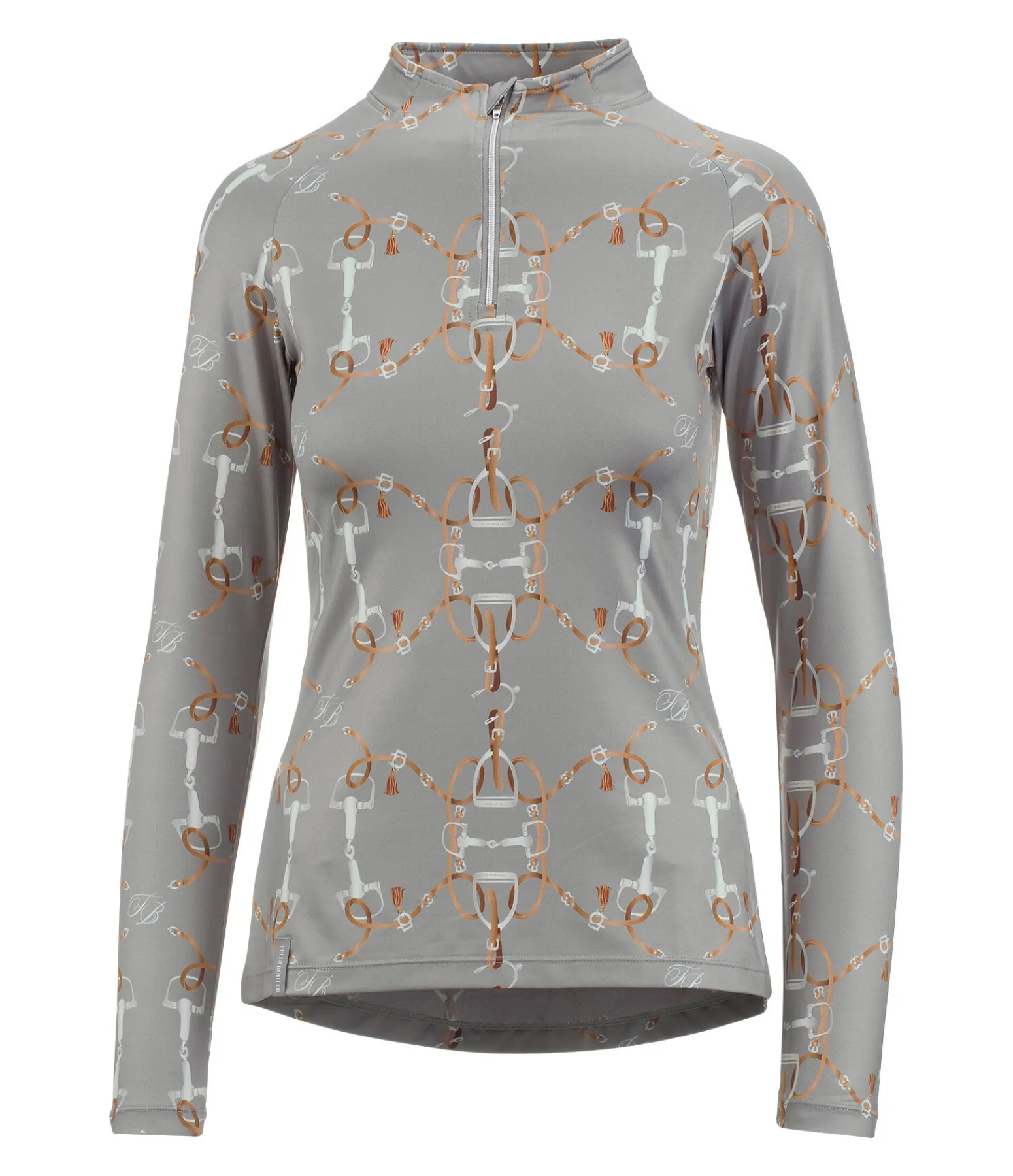 T-shirt fonctionnel à manches longues doux et extensible. Imprimé inspiration équestre all-over. Col montant zippé avec protège-menton. Matière respirante à séchage rapide. 88 % polyester, 12 % élasthanne.