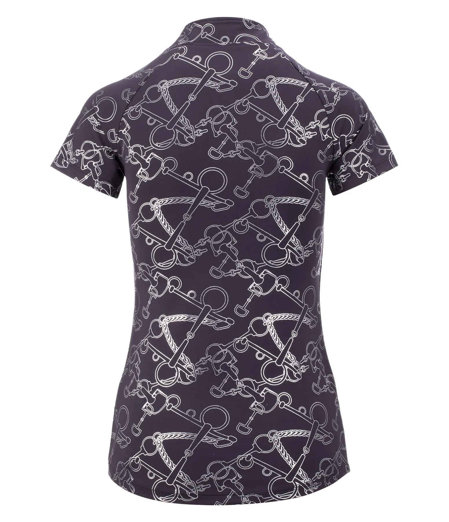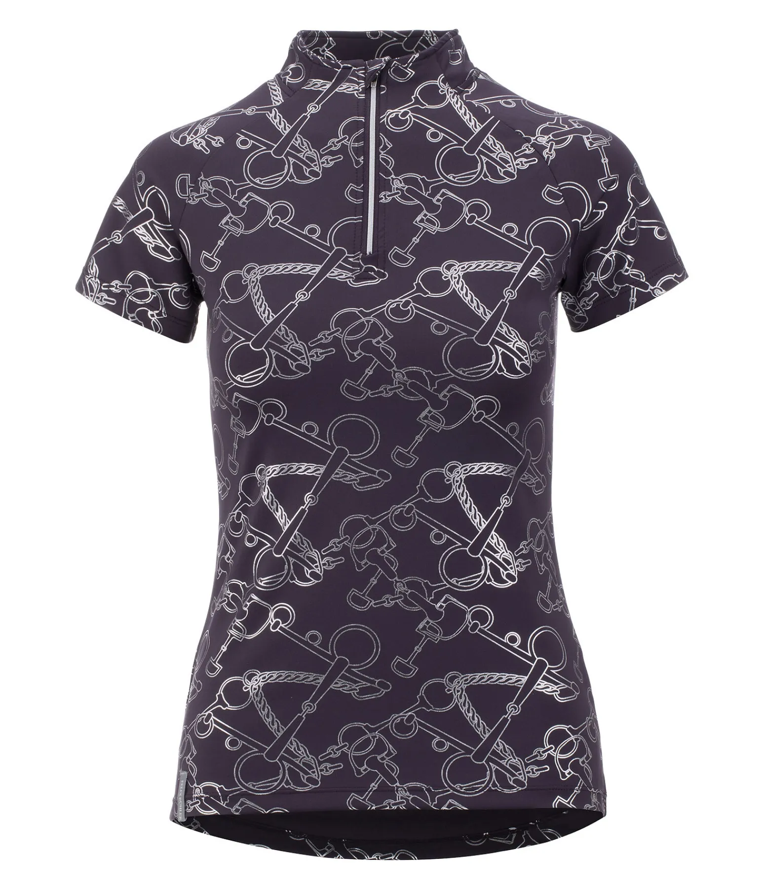 T-shirt technique sportswear et élégant avec imprimé all-over métallisé. Manches raglan et col montant zippé avec protège-menton. Respirant et à séchage rapide. 88 % polyester, 12 % élasthanne.