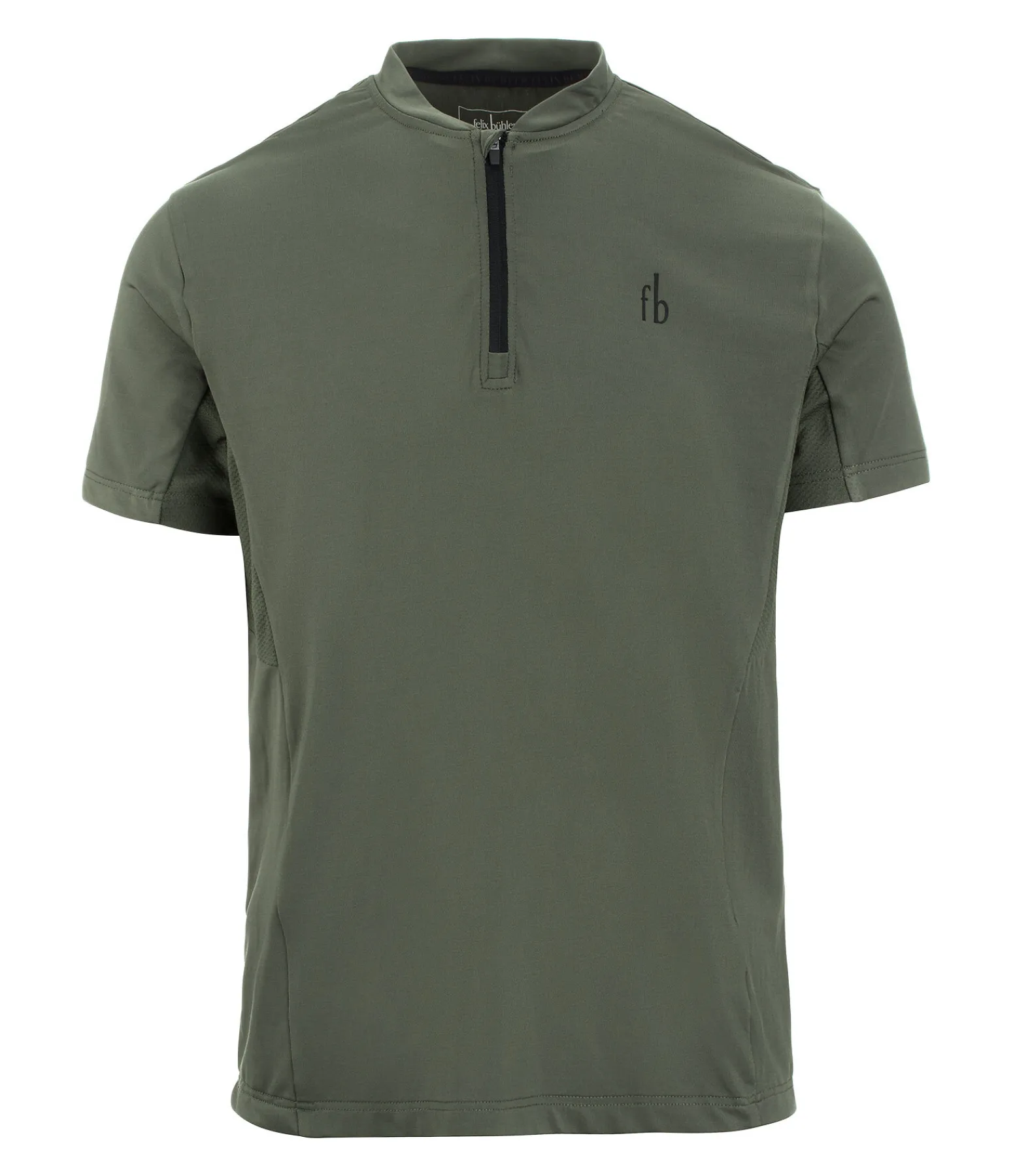 T-shirt zippé sportswear stretch. Respirabilité optimale grâce aux empiècements latéraux en mesh. 88 % polyester, 12 % élasthanne.