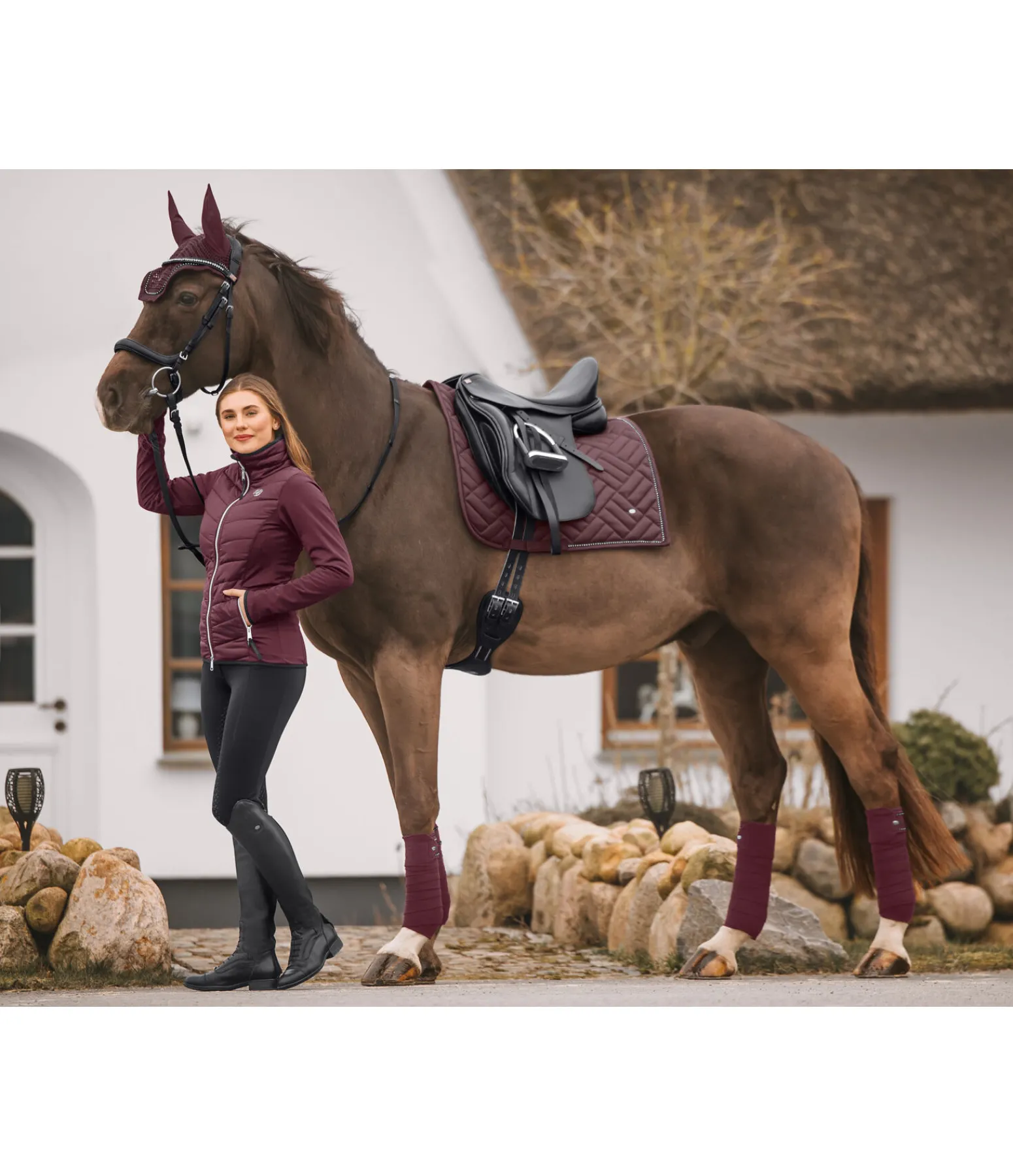 Tapis de selle de forme carrée, particulièrement élégant, avec surpiqûres apparentes. Passepoil avec strass. Petit médaillon discret avec logo gravé. Passants de sangle et de contre-sanglons avec patte auto-agrippante fonctionnelle. Dessous Air mesh respirant et absorbant l’humidité. 100 % polyester.