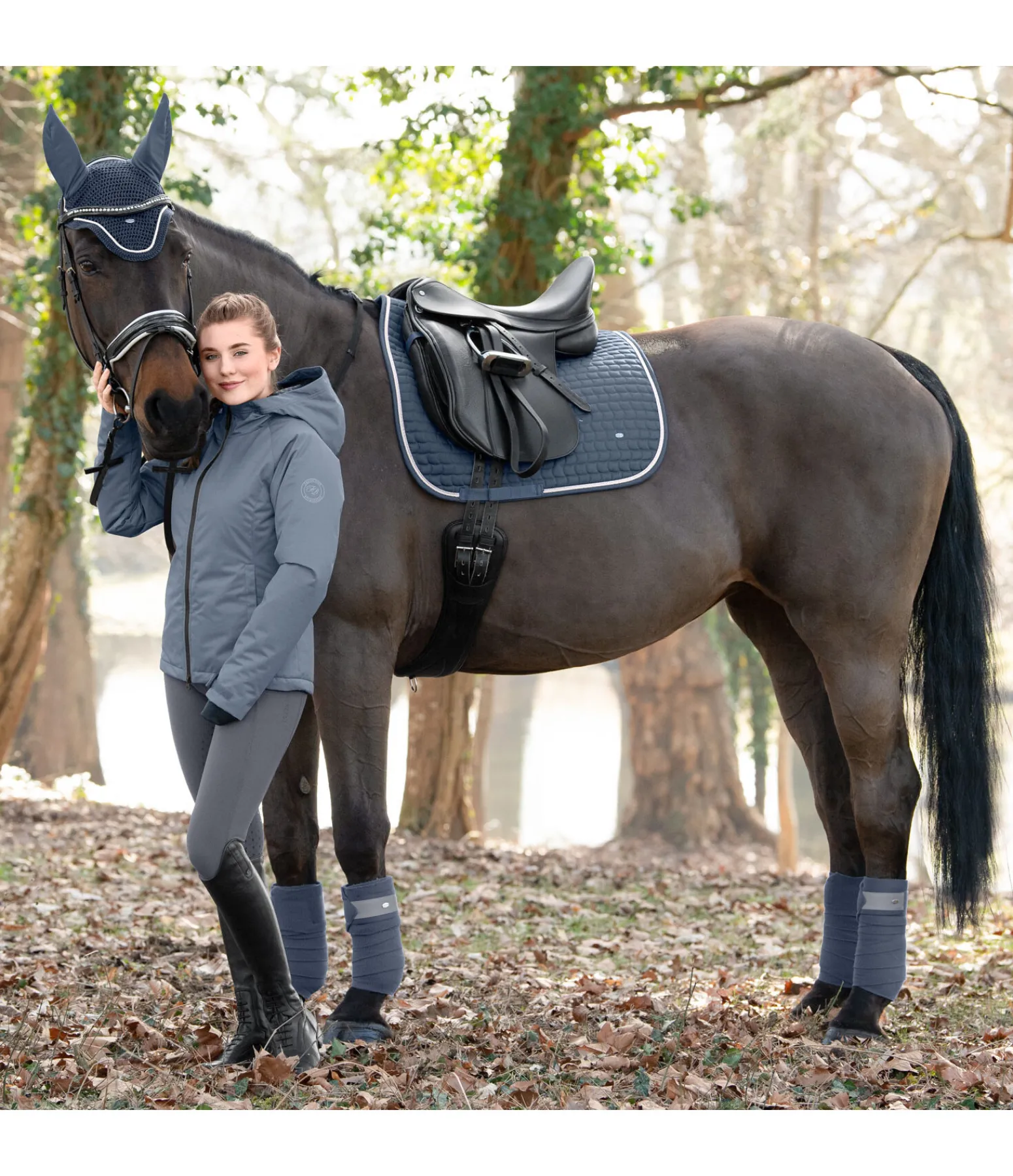 Tapis de selle élégant et durable en coton avec matelassage fin et minimaliste. Décoré d’une petite plaque métallique avec gravure du logo. Bordure ornée de deux cordons scintillants. Passants de sangle et de contre-sanglons avec patte auto-agrippante pratique. Doublure en coton, respectueuse de la robe et absorbant l’humidité. Dessus et doublure 100 % coton, rembourrage 100 % polyester.