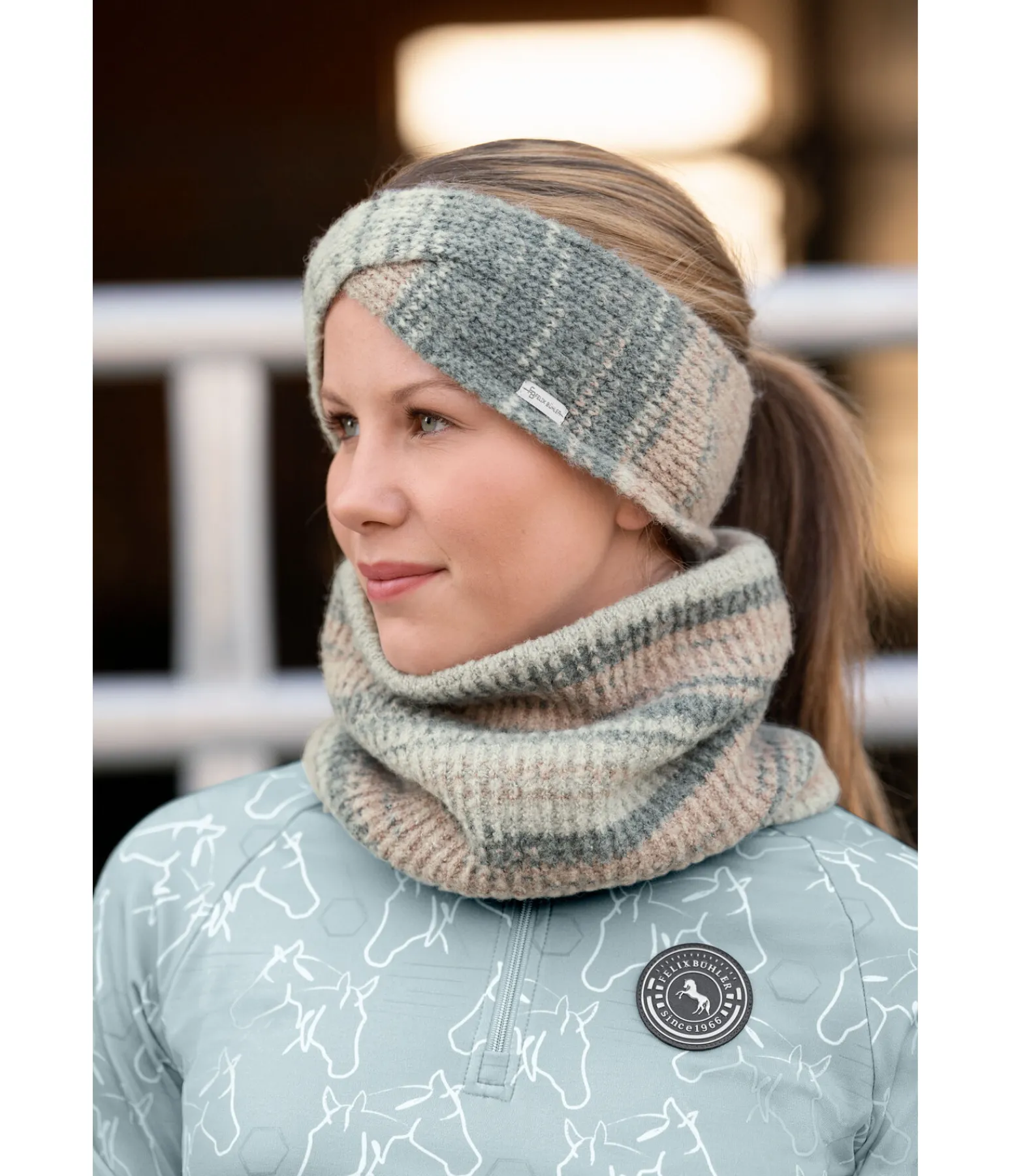 Tour de cou très chic et doux pour enfant avec effet dégradé. Logo Felix Bühler devant. 100 % polyester.