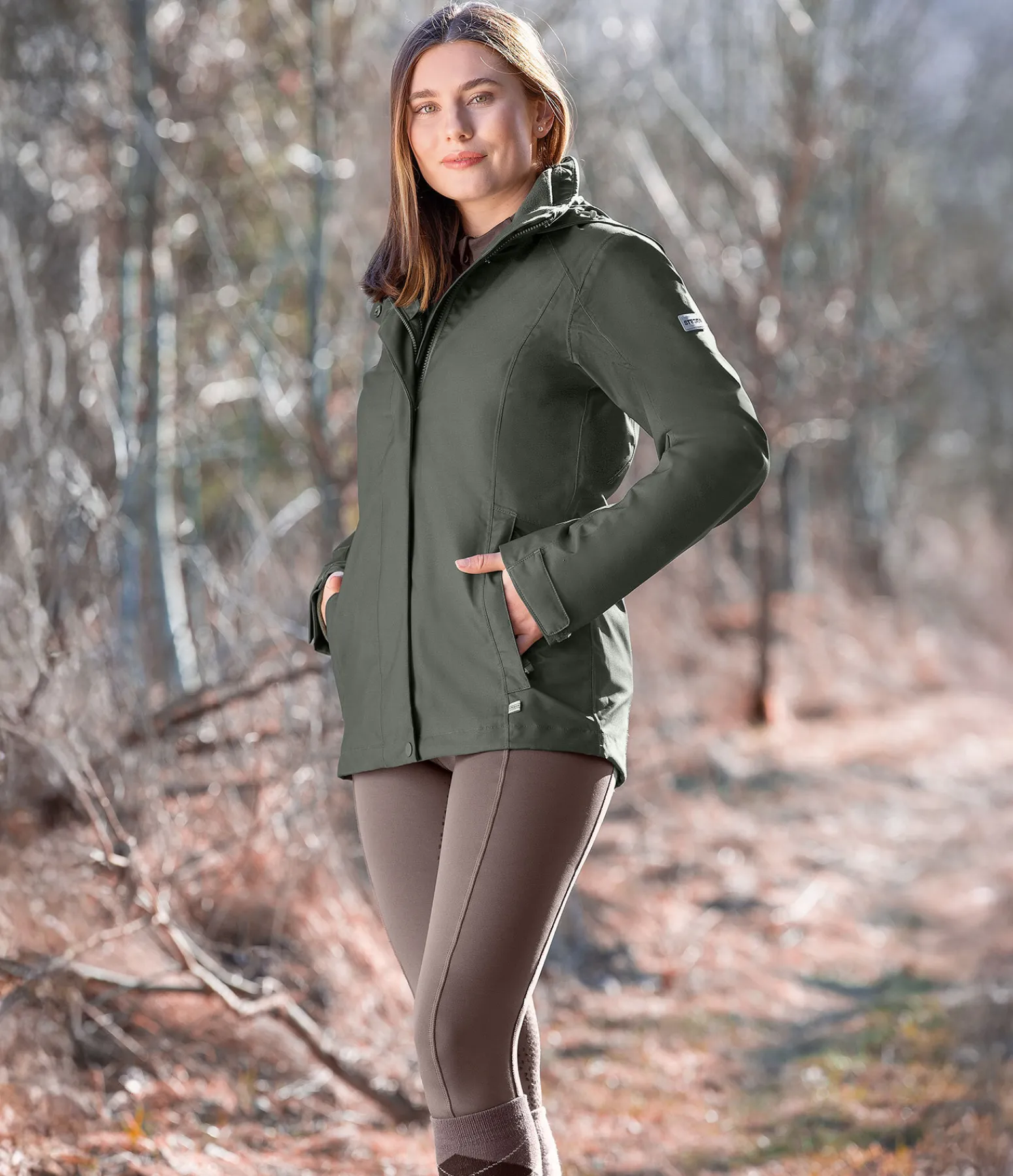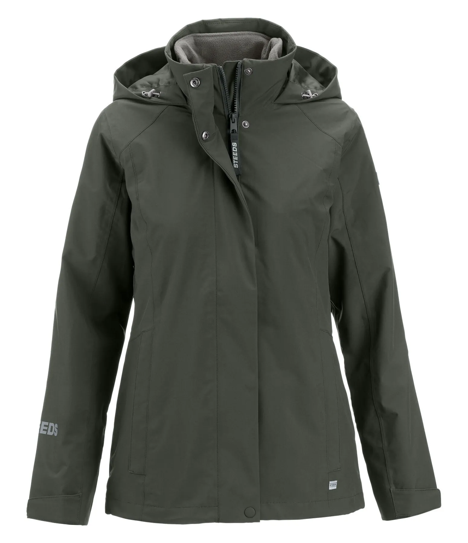 La veste 3 en 1 de STEEDS combine deux vestes en une et offre au total 3 styles différents : tu peux porter chaque couche séparément ou ensemble ! La veste extérieure coupe-vent, imperméable (10 000 mm) et respirante possède un col haut avec capuche pouvant être enroulée dans le col ou fixée dans le dos par bouton pression, une fermeture à glissière double sens dissimulée, 2 poches zippées dissimulées, des bas de manche et une taille réglables, un imprimé STEEDS réfléchissant, un badge logo STEEDS sur la manche et une poche intérieure zippée. La doublure en polaire se fixe avec une fermeture à glissière et peut donc être portée avec ou sans la veste extérieure. Cette doublure a un col montant, 2 poches avec bouton-pression et une broderie STEEDS sur la manche. Les deux vestes ont une coupe plus longue à l’arrière. 100 % polyester, membrane intérieure 100 % polyuréthane.