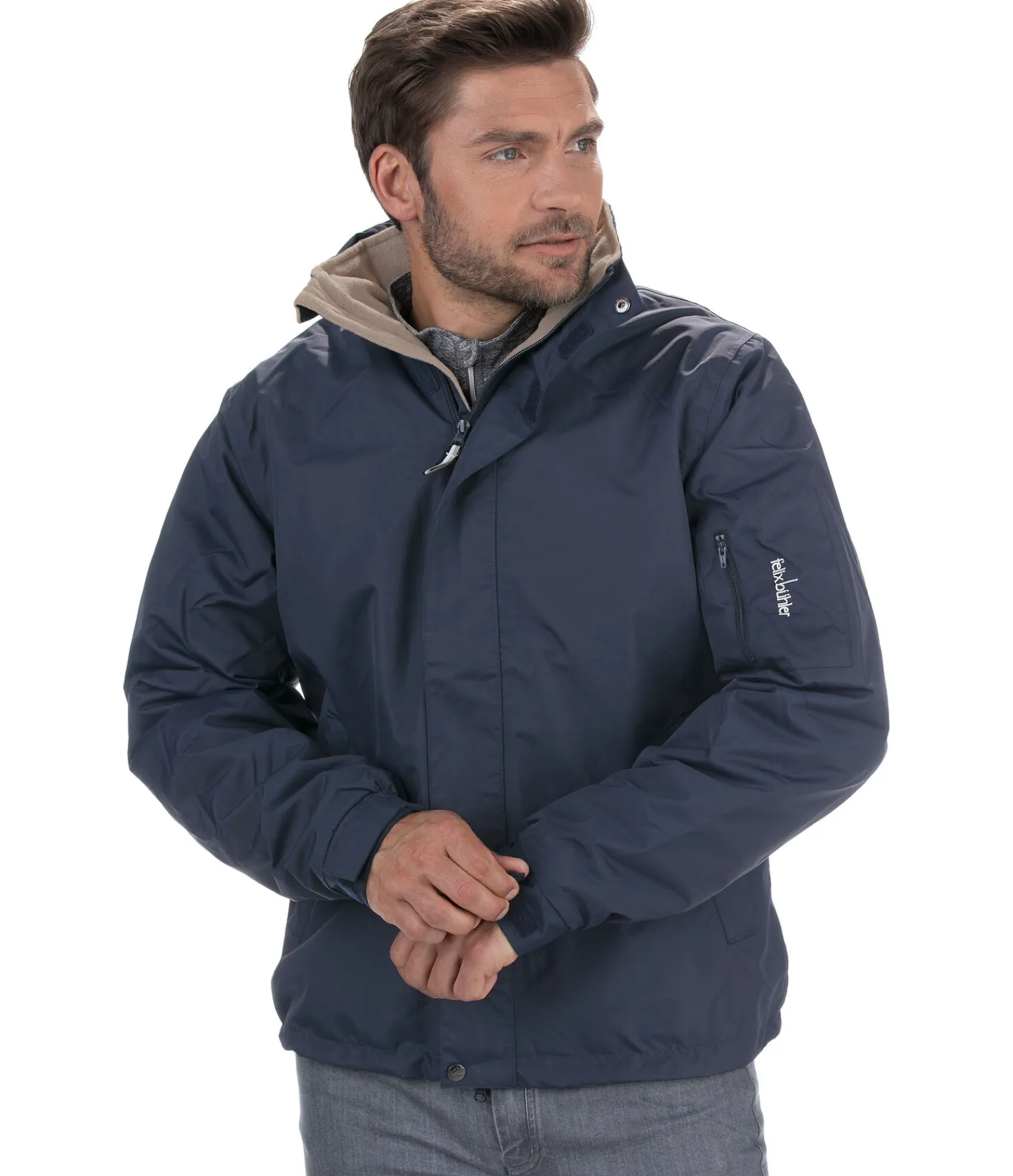 Blouson d’équitation fonctionnel, robuste et sportswear. Idéal pour toute l’année. Convient pour monter à cheval ou travailler à l’écurie. Imperméable et coupe-vent. Matière respirante. Doublure chaude en polaire. Fermeture à glissière à l’intérieur du blouson offrant un accès pratique pour faciliter la broderie. Facile d’entretien. Capuche amovible zippée ajustable par cordon de serrage. Col montant doublé en polaire douce pour protéger efficacement le cou et de la nuque contre le froid et le vent. Fermeture à glissière avec sous patte et protège-menton. Bas des manches ajustables par patte auto-agrippante. Ourlet ajustable par cordon de serrage. 2 poches latérales zippées. 1 poche zippée sur la manche avec logo Felix Bühler. 1 poche intérieure zippée.