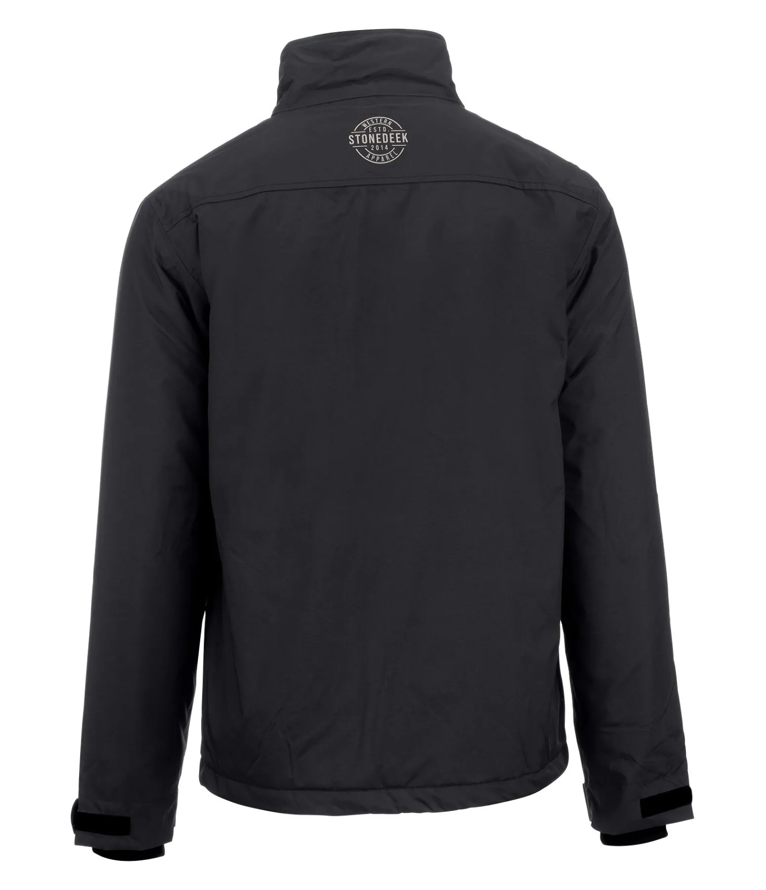 Veste mi-saison imperméable et coupe-vent pour homme avec col montant. Avec fermeture à glissière à double sens, 2 poches zippées, poche poitrine et poignets réglables. 100 % nylon.