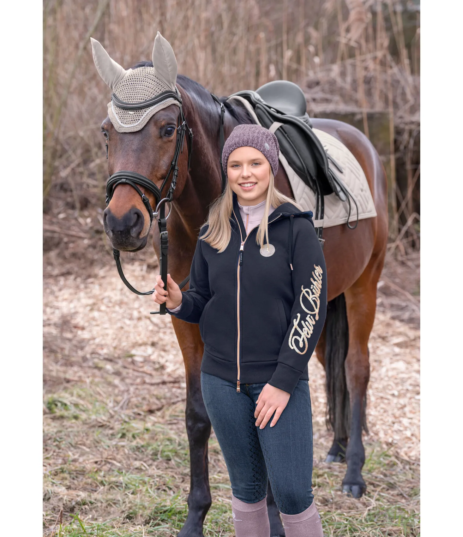 Veste sweat sportswear en coton stretch. Badge Felix Bühler sur la poitrine et inscription Felix Bühler rose doré scintillante. Capuche réglable ornée d’un ruban de velours et d’un cordon torsadé. Intérieur molletonné. Fermeture à glissière double sens rose doré avec sous-patte et protège-menton. Deux poches latérales. Bord-côte sur le bas des manches et la taille. 60 % coton, 40 % polyester.